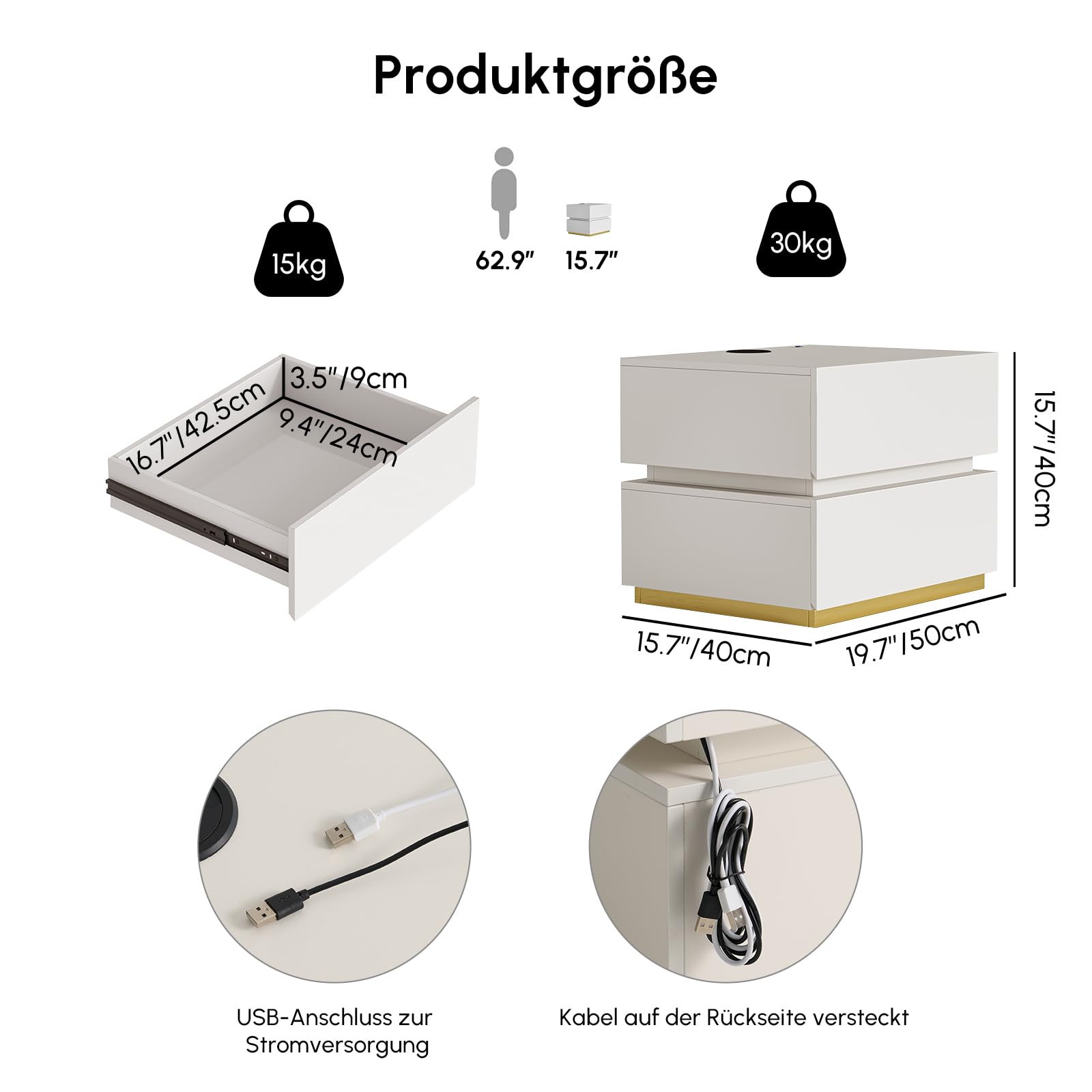 - [Large Storage Space with 3 Quiet Drawers] - Our 3 drawer bedside cabinet provides you with ample space for books, glasses, chargers and more. The soft-close drawers glide quietly and prevent disturbances at night - ideal for a quiet sleeping environment