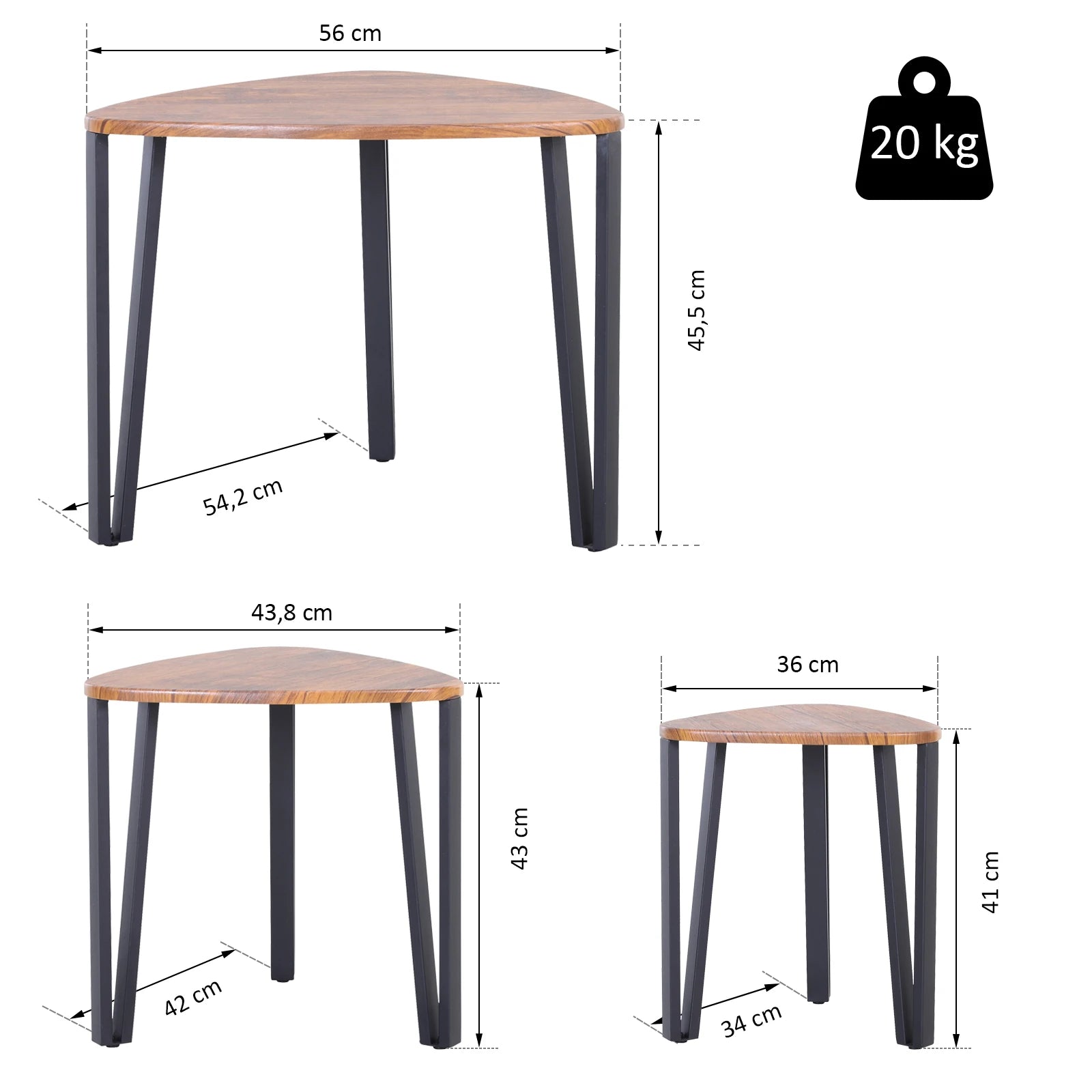 & Iquest; You need a side table but you are nothing traditional? & Iquest; What do you think of this 3-table sleek nest set? They are perfect to use both together and separately. Its metal legs and natural wood effect envelope design is sturdy and beautiful. In addition, you can clean them very easily with a damp cloth, thanks to its PVC cover. Do not put limits on your imagination and look for different spaces to locate them so that all the beautiful corners of your house stand out. As in addition, if you use them you can place them inside each other saving a lot of space... this elegant nest 3 tables set... & iexcl; You will love it!