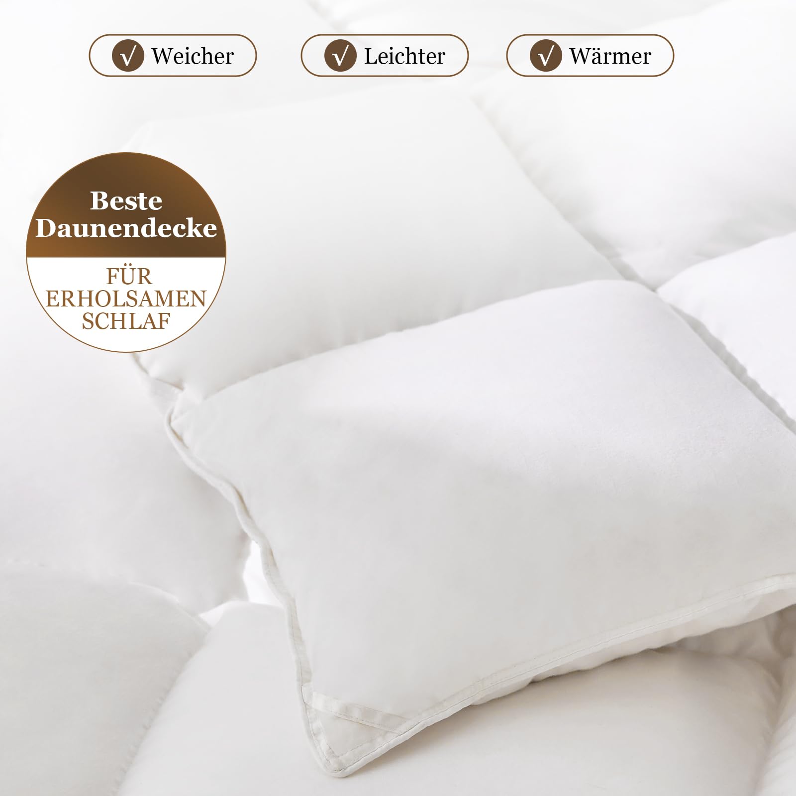 - Quality guarantee: The 135 x 200 cm winter down duvet is made from high-quality down and feathers. It bears the German Oeko-Tex seal of approval and is RDS certified. It meets the standards for textiles that come into direct contact with human skin and contains no harmful substances. And we guarantee that no live-plucked feathers are used, so that animal welfare is preserved.