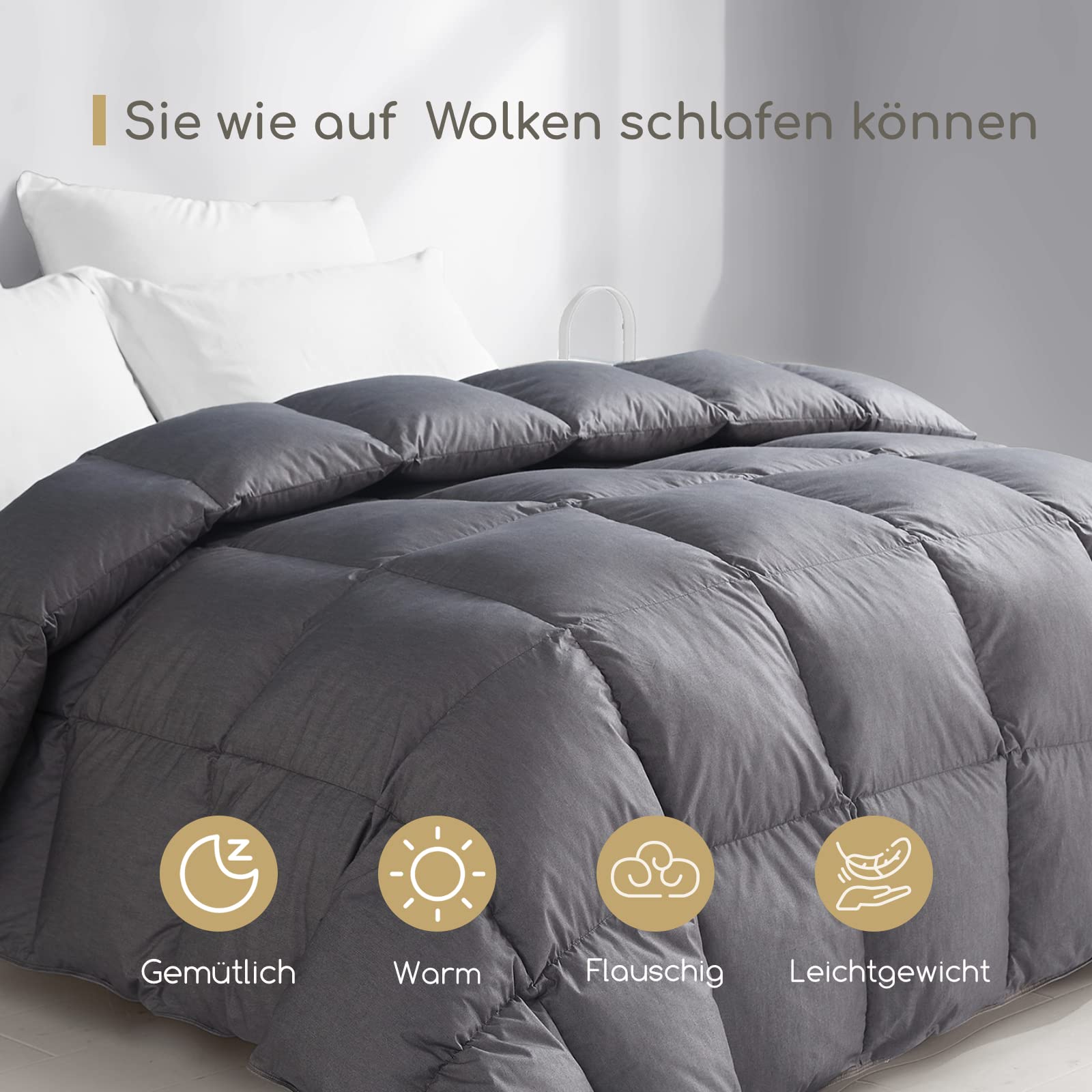 - Expert design: The expertly designed, 135 x 200 cm winter feather duvet features box quilting, so that the down is evenly spread into each compartment. Instead of a high percentage of goose down (10%), fluffy, soft feathers (60%) and natural down fibres (30%) are used. The perfect ratio of filling, the result of numerous experiments carried out by professional duvet designers, ensures that the duvet is fluffier and softer. A better experience, worth a try!