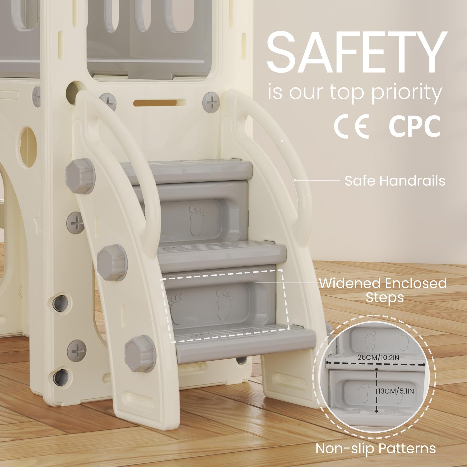 - SAFETY TESTED Made from thick, high quality waterproof HDPE, this toddler slide set is rigorously tested for safety and complies with EU and US standards. Junior explorers can play with confidence!