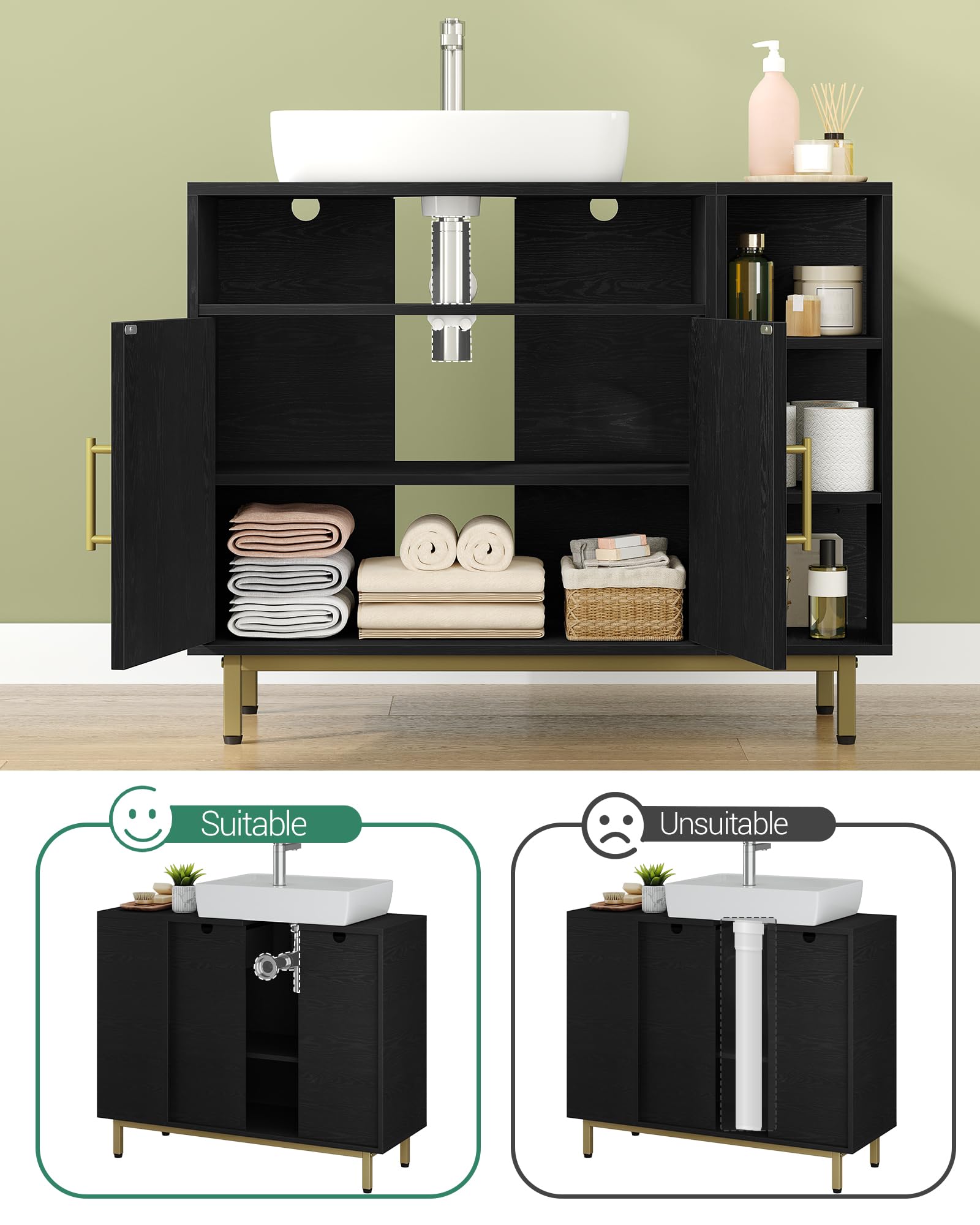 - Suitable for a wide range of siphons: the bathroom cabinet is equipped with a U-shaped slot that can be combined with a wide range of siphons. Please make sure your own drain is arranged before purchase and installation. If you have any questions, please contact us