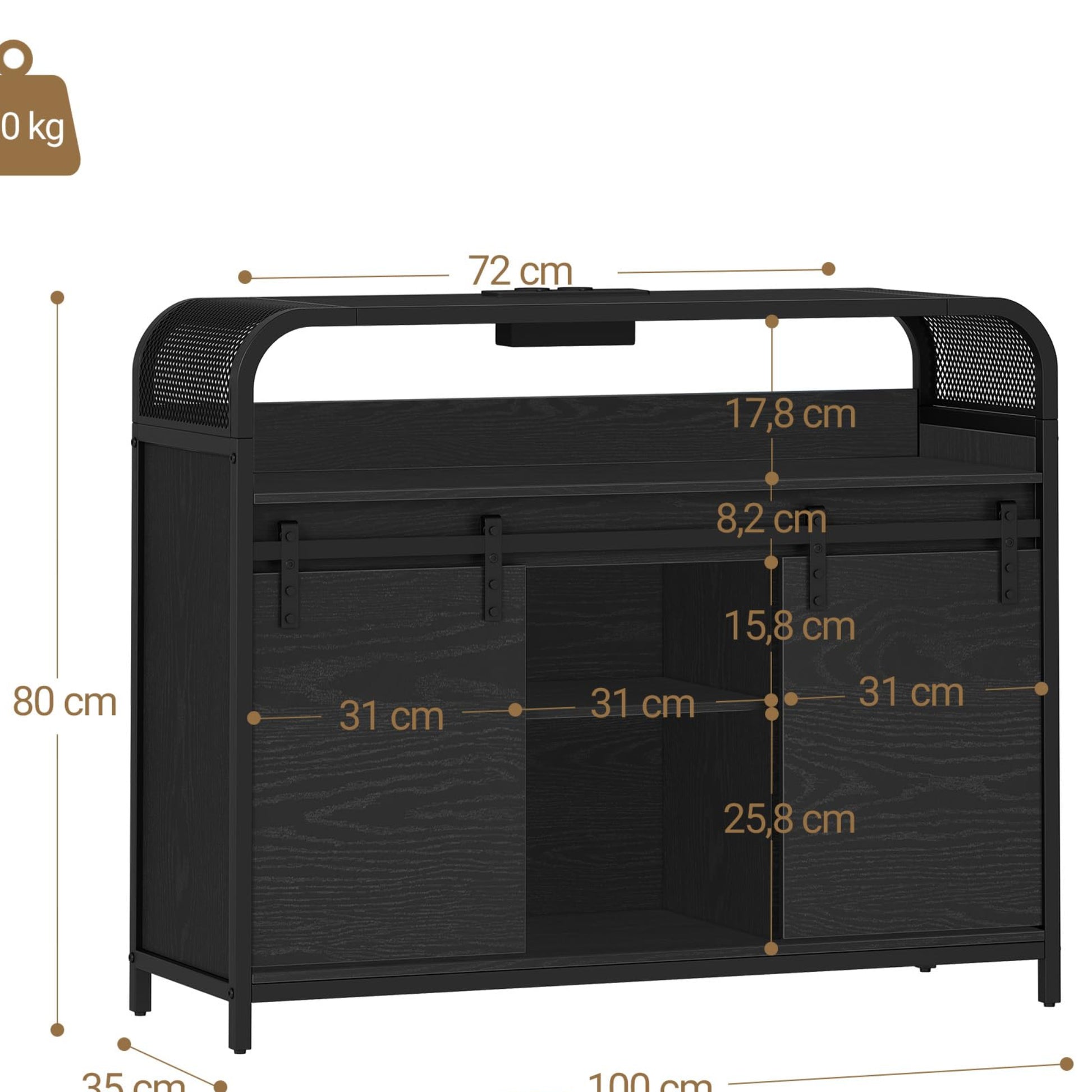 - Generous storage space: this versatile sideboard in a modern design offers three separate storage spaces as a practical storage cabinet. The 100 cm wide worktop is ideal for kitchen appliances, while the open centre area and 6 compartments provide additional storage space for an organised kitchen