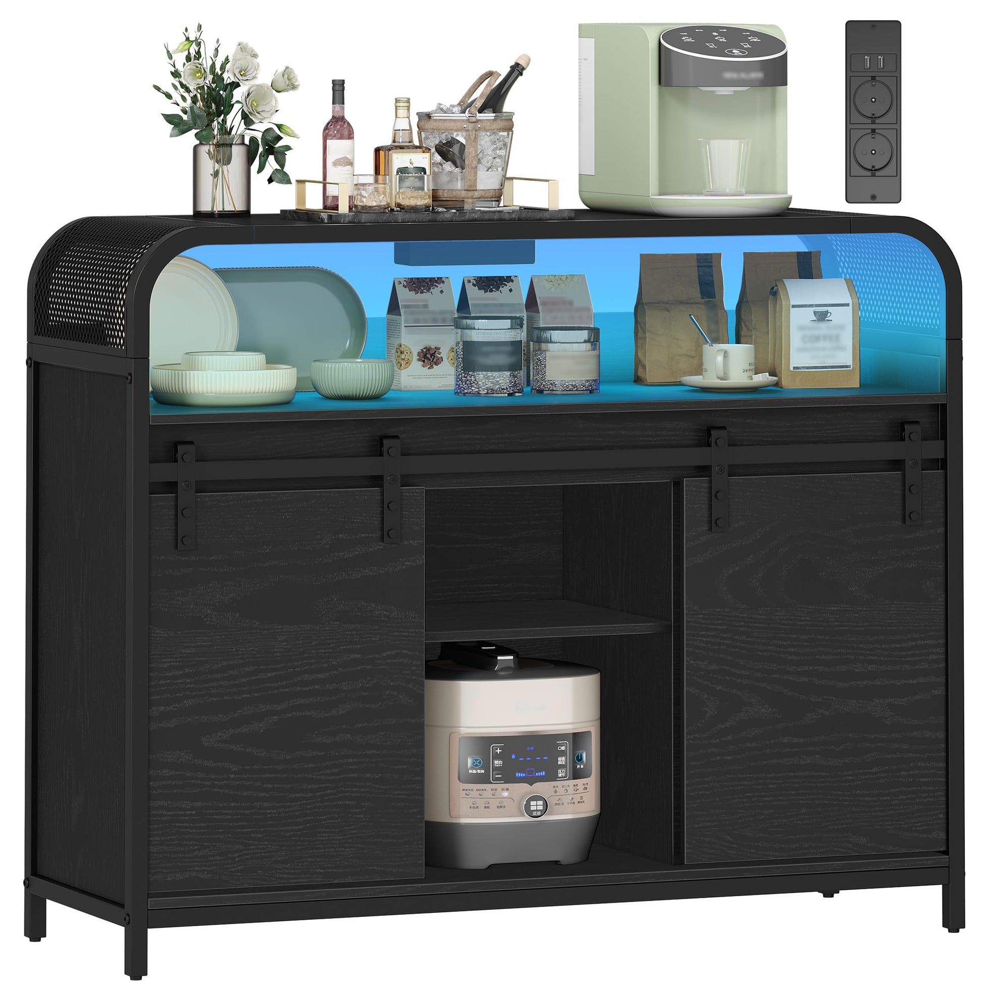 - LED lighting and power strip: integrated power strip with 2 AC and 2 USB ports for small electrical devices. The dimmable LED lighting with 25 colours and 6 brightness levels creates an individual atmosphere - controllable at the touch of a button or remote control
