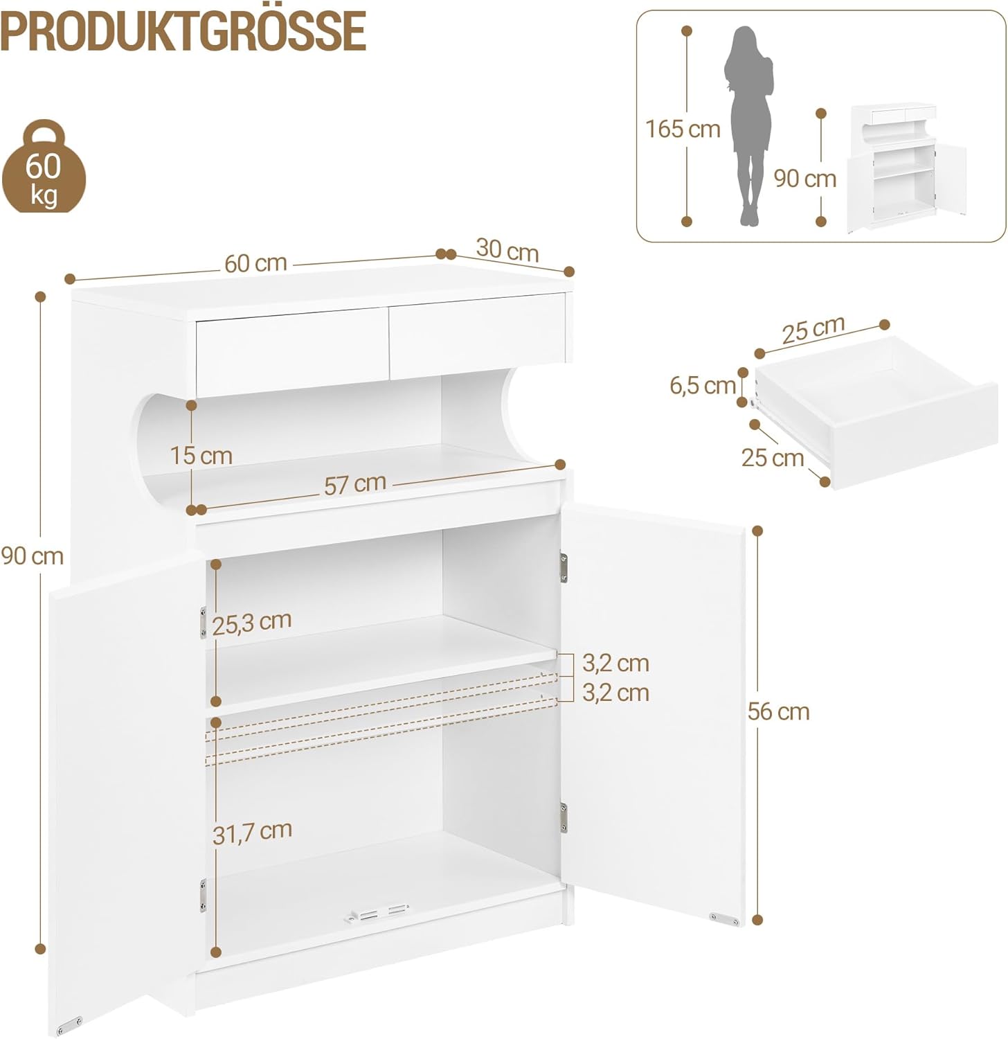 Hzuaneri SC63903X Bathroom Cabinet Storage Cabinet with 2 Drawers and 2 Doors Kitchen Cabinet Chest of Drawers Adjustable Shelf for Bathroom Drawing Room 30 × 60 × 90 cm White