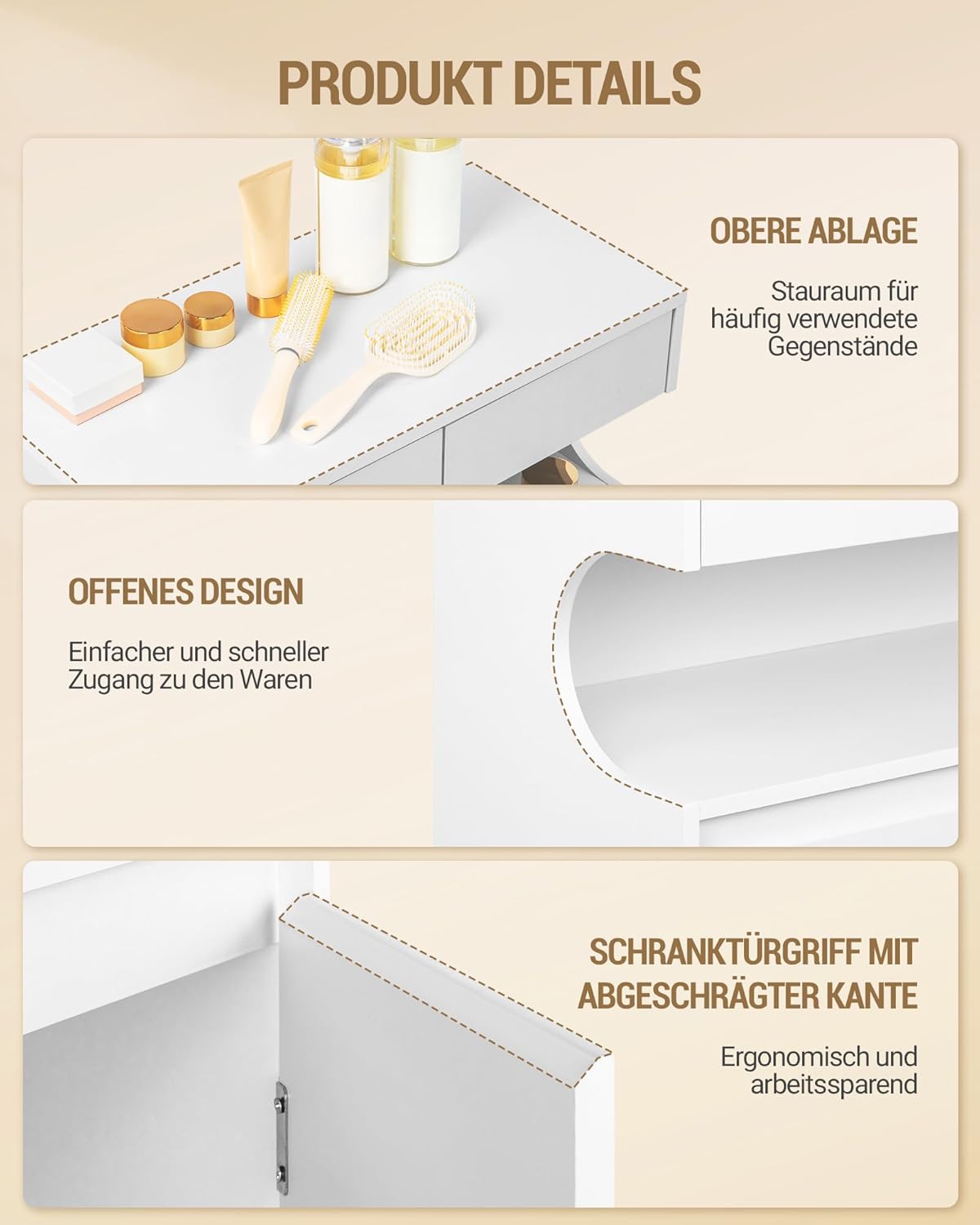 - Fashionable design: The 45° bevelled cabinet door design corresponds to the hand-mechanical design, which is labour-saving and clamp-proof and gives the overall look a modern and simple look. The open design improves the permeability of the room and offers plenty of storage space and a clear presentation of your items. You can remove the items you need in no time at all, taking into account aesthetics and functionality alike