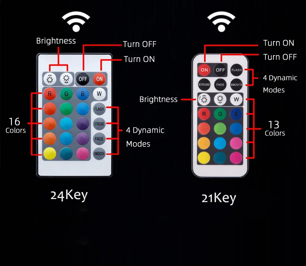 Comes with a remote controller, provided 4 light mode and 13 different colors for your to choose.
