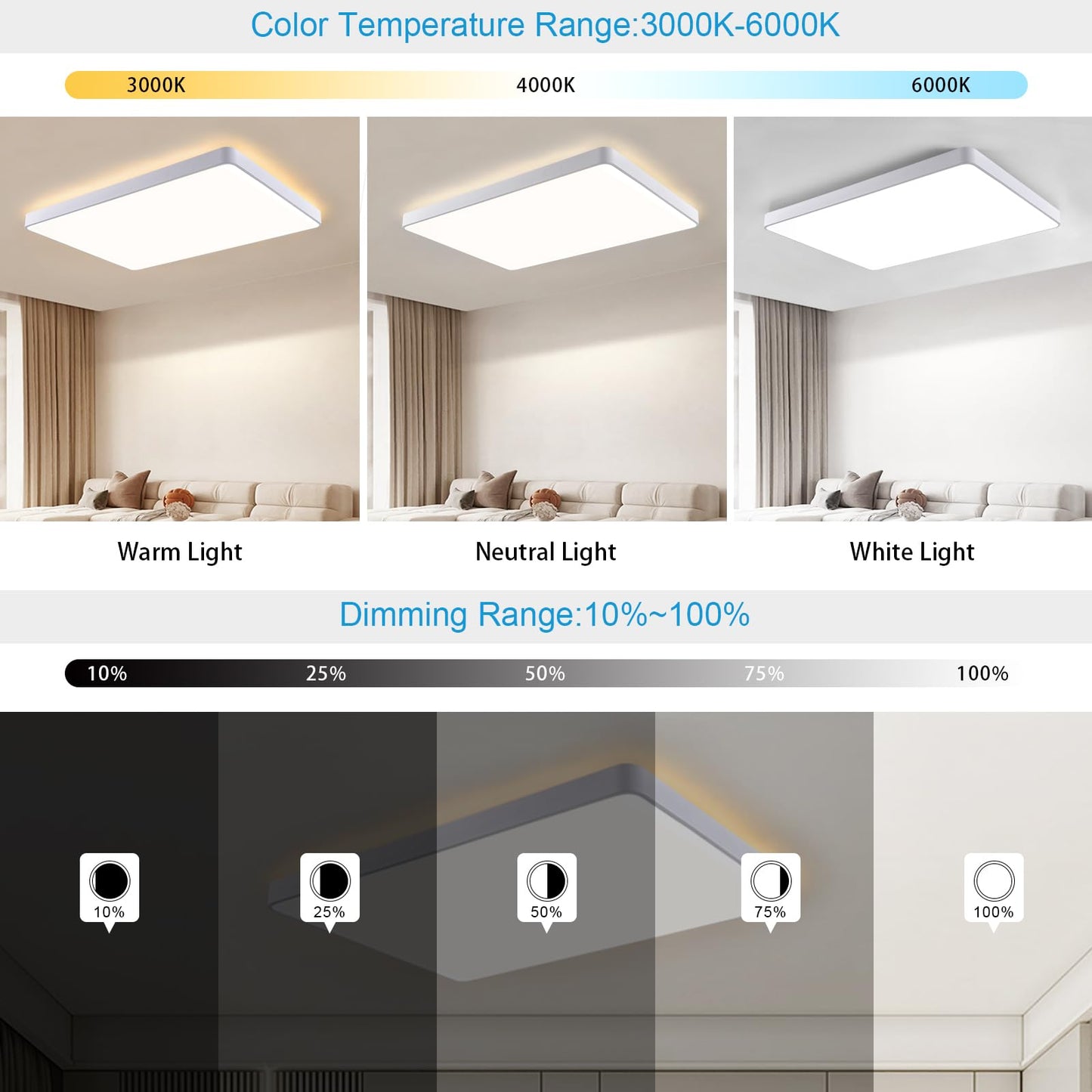 JDONG 90W LED Deckenleuchte Dimmbar 90x55CM Deckenlampe mit Fernbedienung 3000K-6500K Helligkeit einstellbar moderne Rechteckige Leuchte für Wohnzimmer