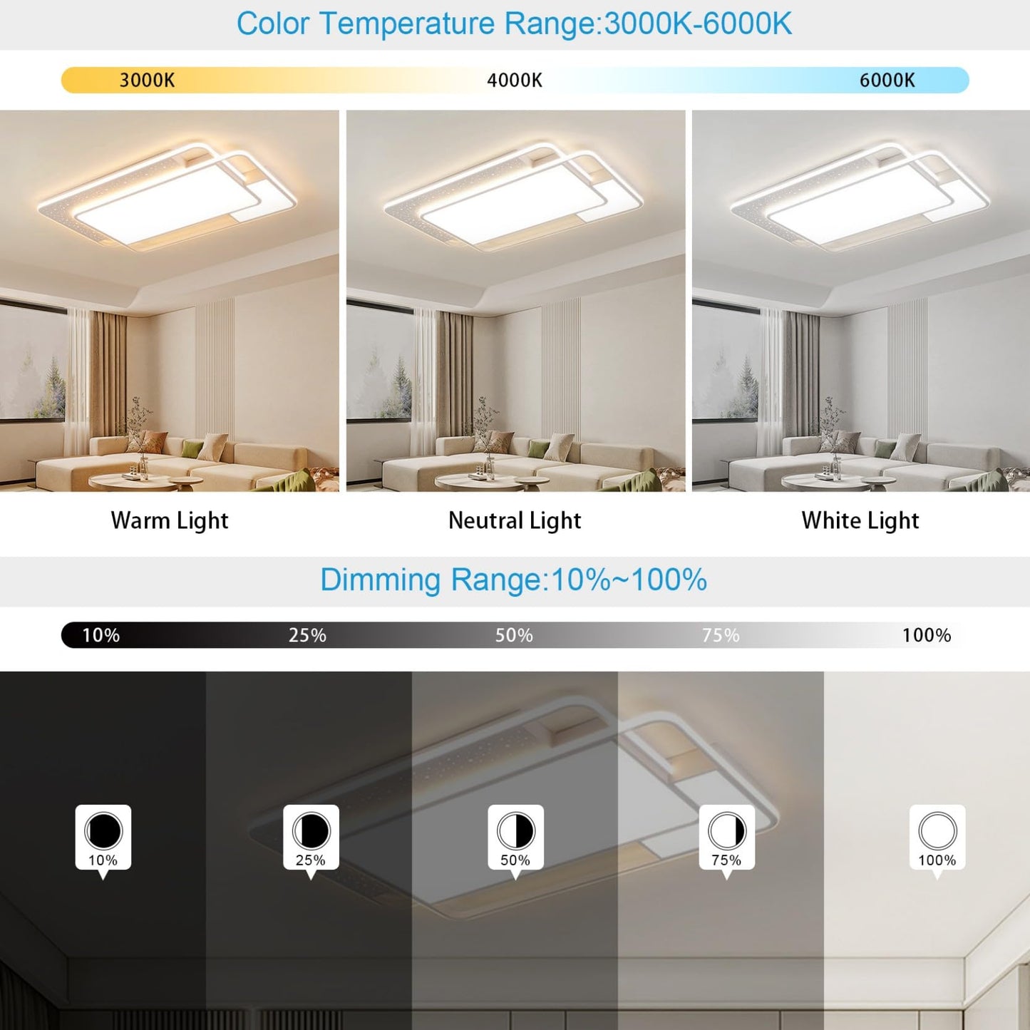 - Memory-Funktion: LED-Deckenleuchte wird automatisch den Lichtmodus vor dem Ausschalten des Lichts erinnern, keine Notwendigkeit, das Licht wiederholt einzustellen, sparen Sie Zeit und Mühe. (Bei Problemen nach dem Kauf können Sie sich an unseren Kundendienst wenden, wir werden schnell reagieren)