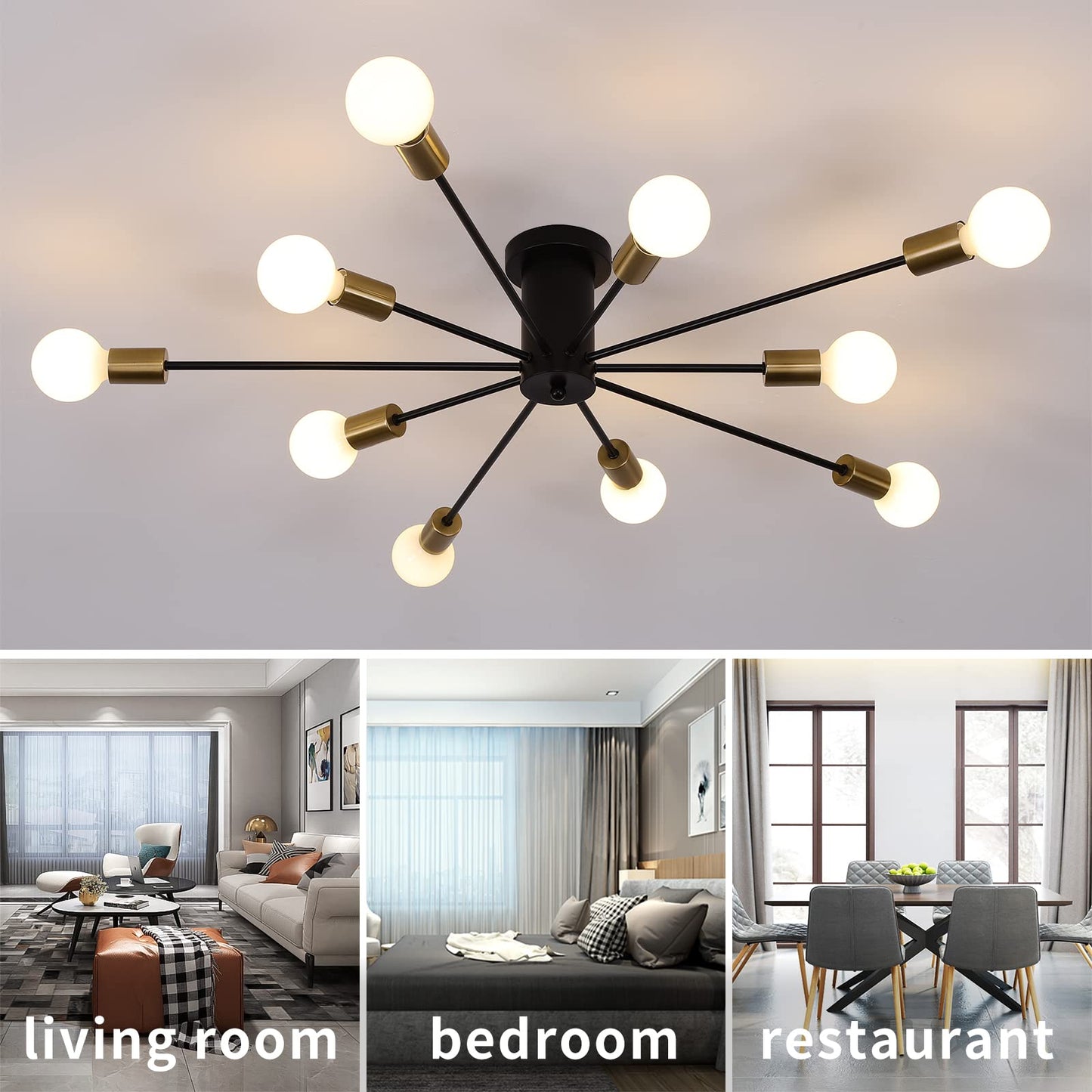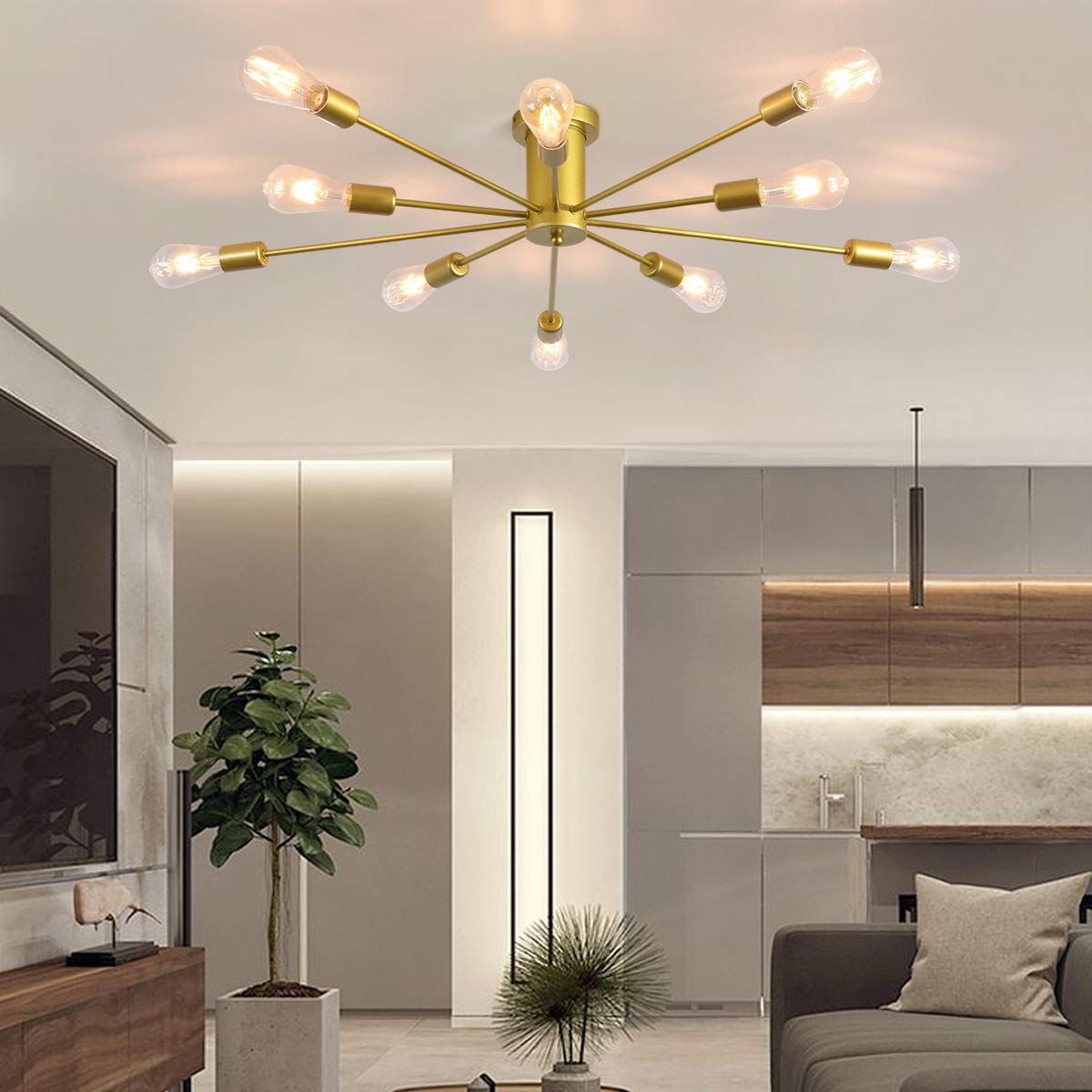 - Easy installation: rustic ceiling light with gold surface, easy to install and use, hard-wired, 10 arms are all pre-wired and pre-thread, you just need to assemble the light, wire the light arm and install 10 bulbs. Accessories and installation instructions are included. Please email us if you have any questions.
