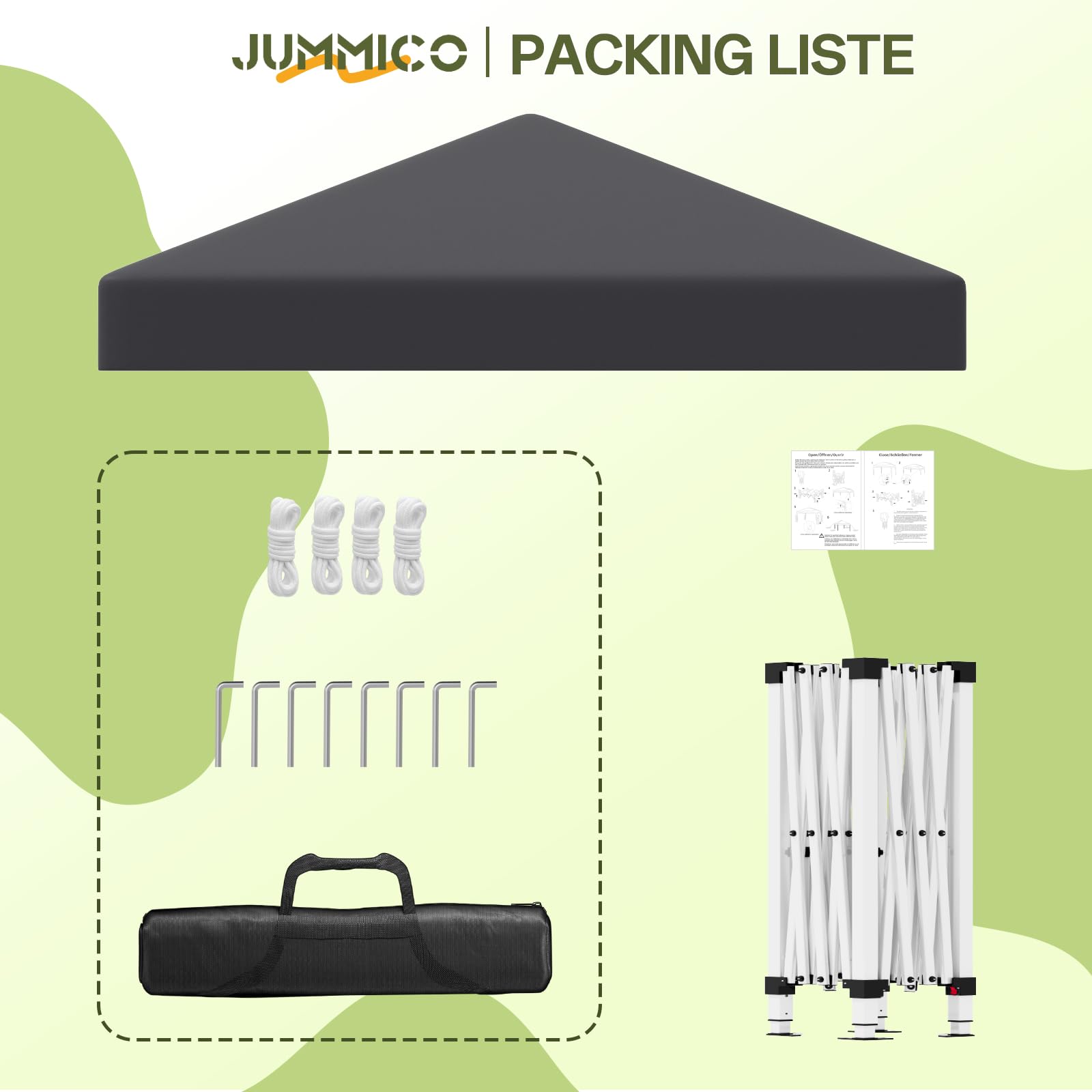 - Easy to assemble and transport: the Devoko gazebo (3 x 3 m) can be set up in just a few simple steps - no tools required. Take out the frame and tarpaulin, stretch the fabric over the frame, tighten the legs, and you're ready to use in just 5 minutes. Weighing in at 14 kg, we offer accessories such as a carry bag, so it can be easily transported in the boot or in your hand.