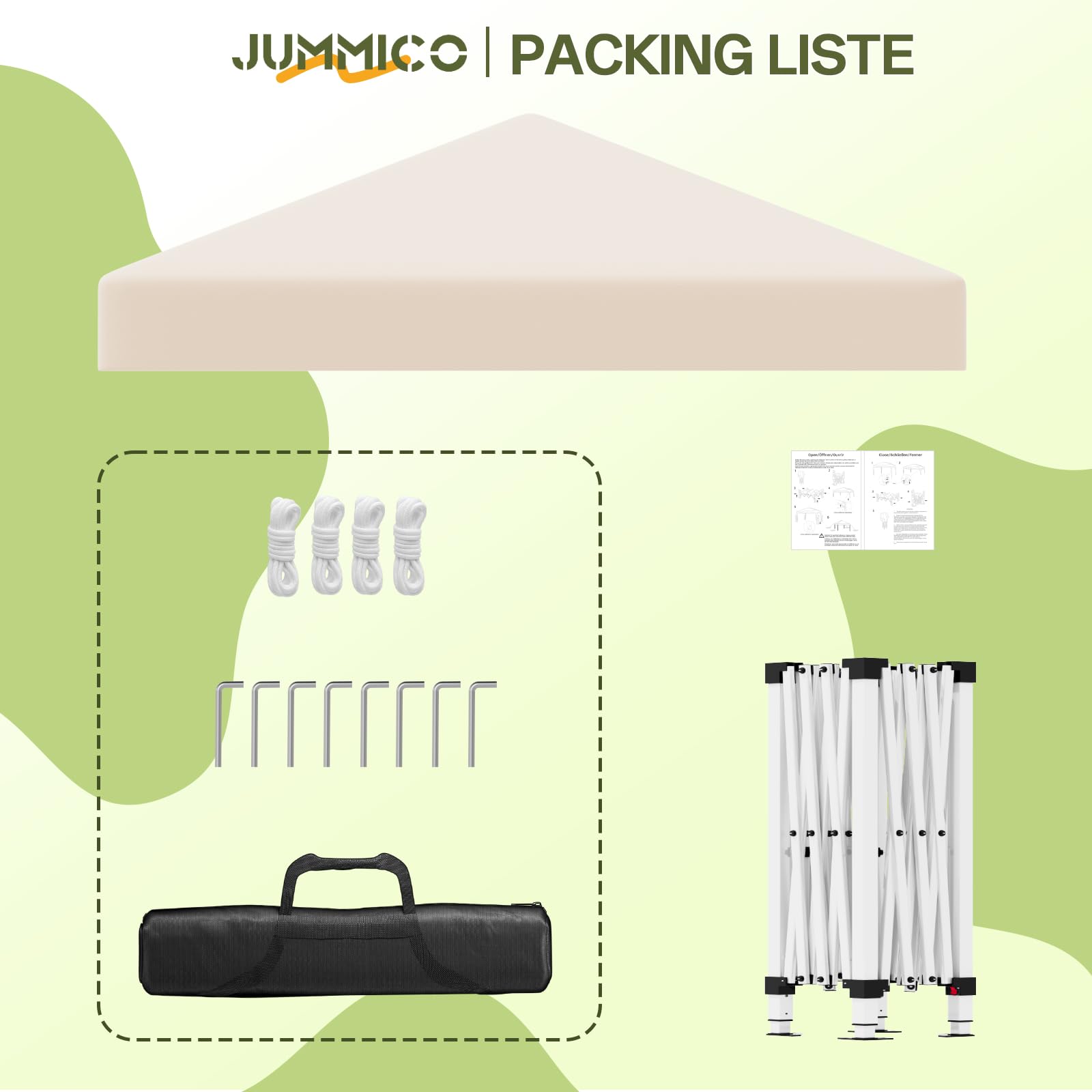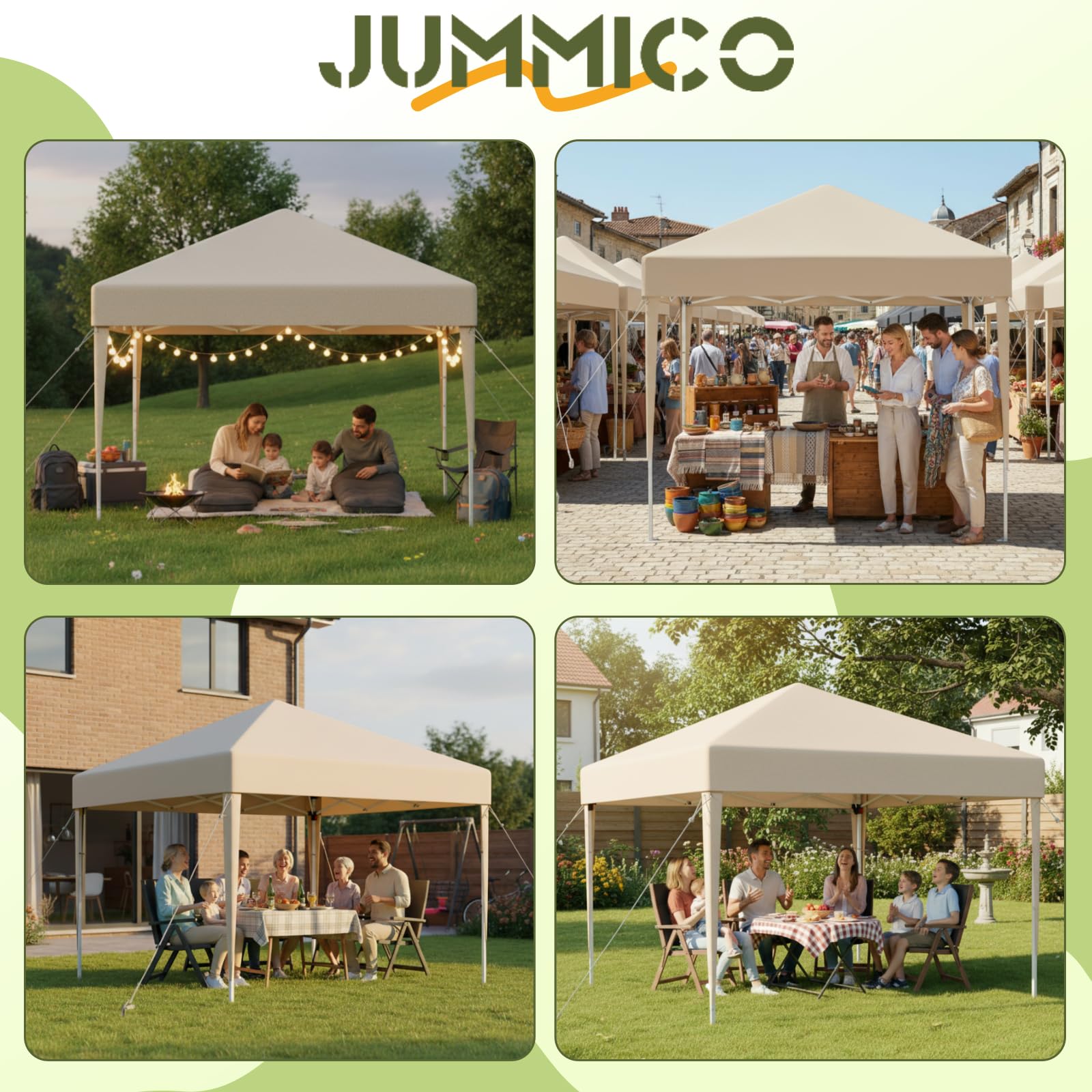 JUMMICO Gazebo Folding Gazebo 2 x 2, Gazebo Height Adjustable Stable Waterproof Winterproof Pop-Up Garden Gazebo UV Protection 50+ Folding Tent for Garden, Courtyard, Camping, Gazebo Beige