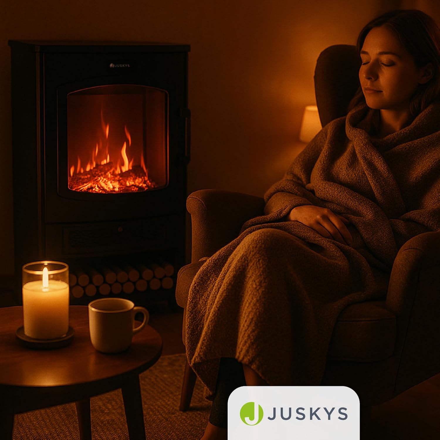 Juskys Electric Fireplace 1800W - Black, Electric Standing Fireplace with LED Flame Effect, WiFi/App Control, Remote Control