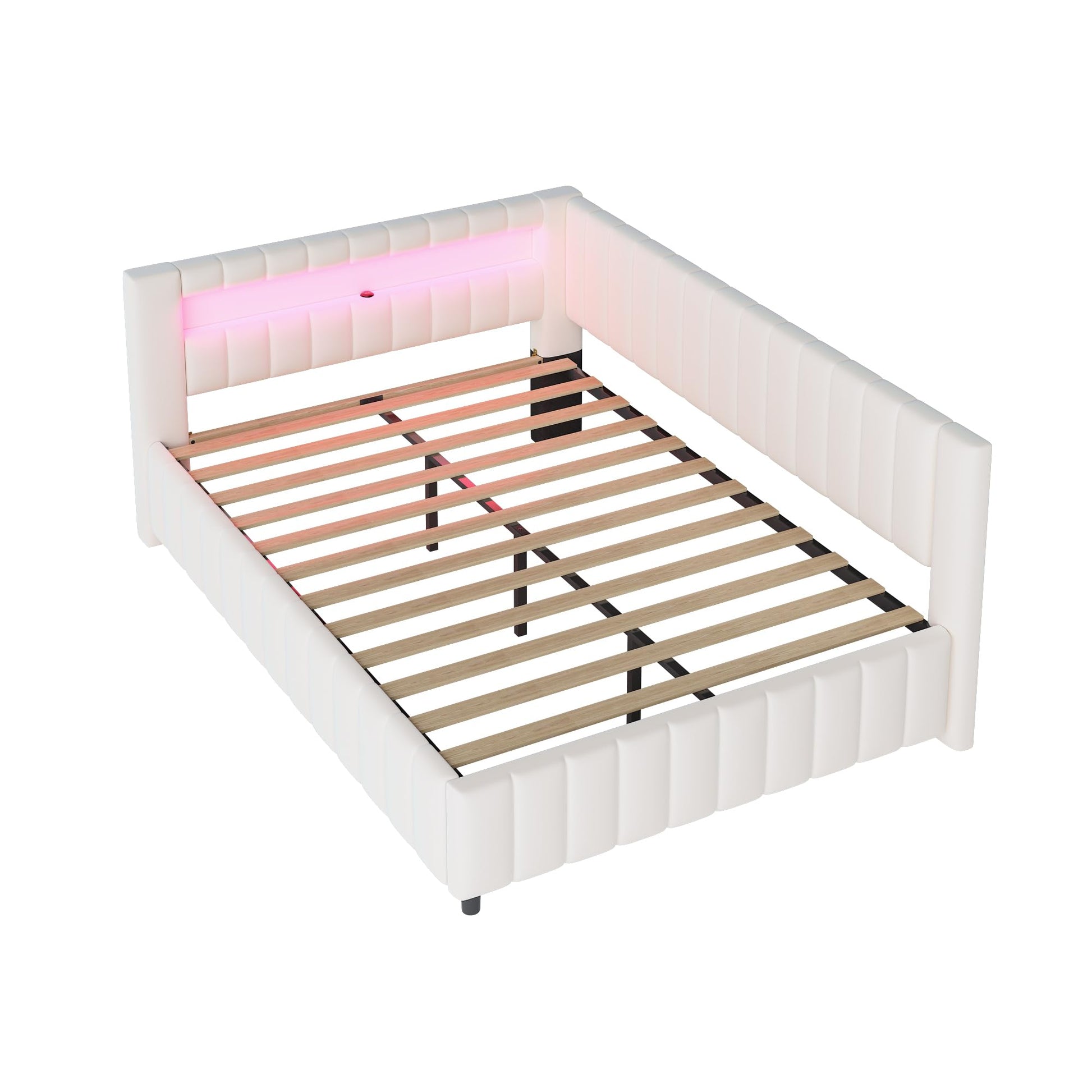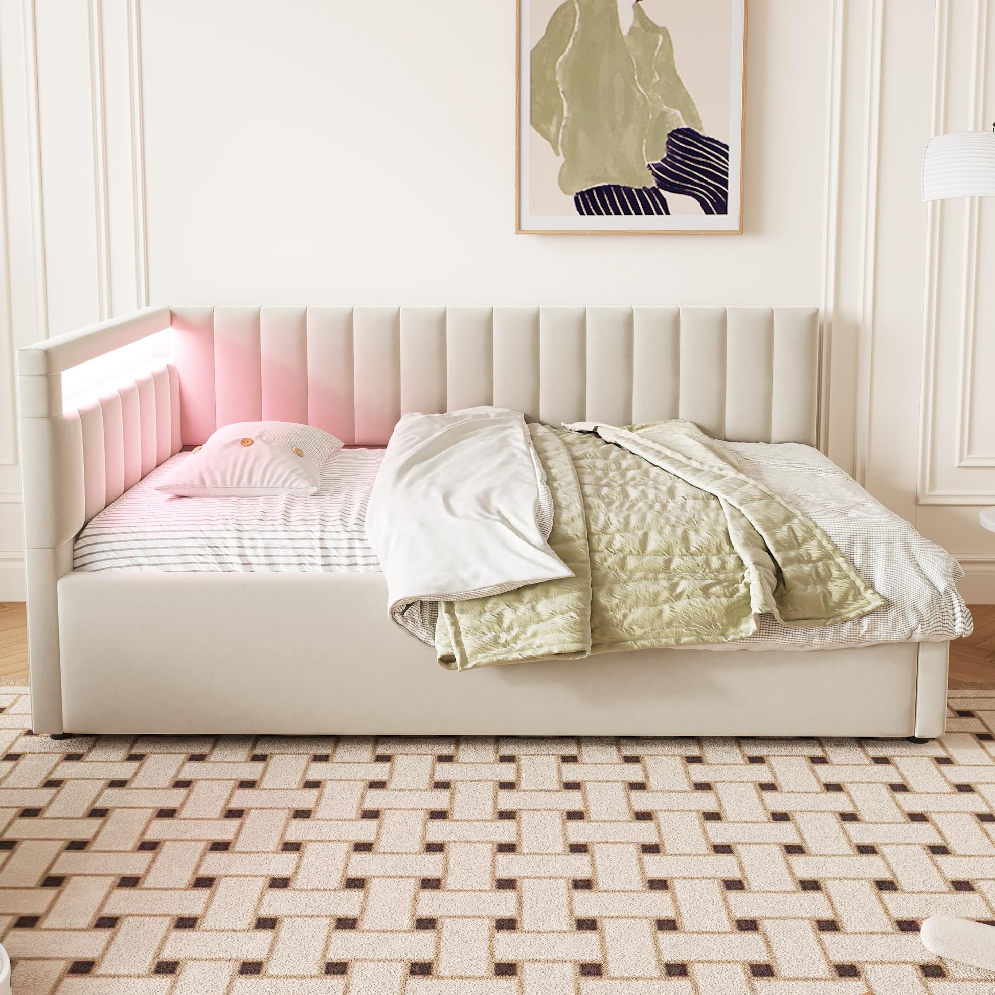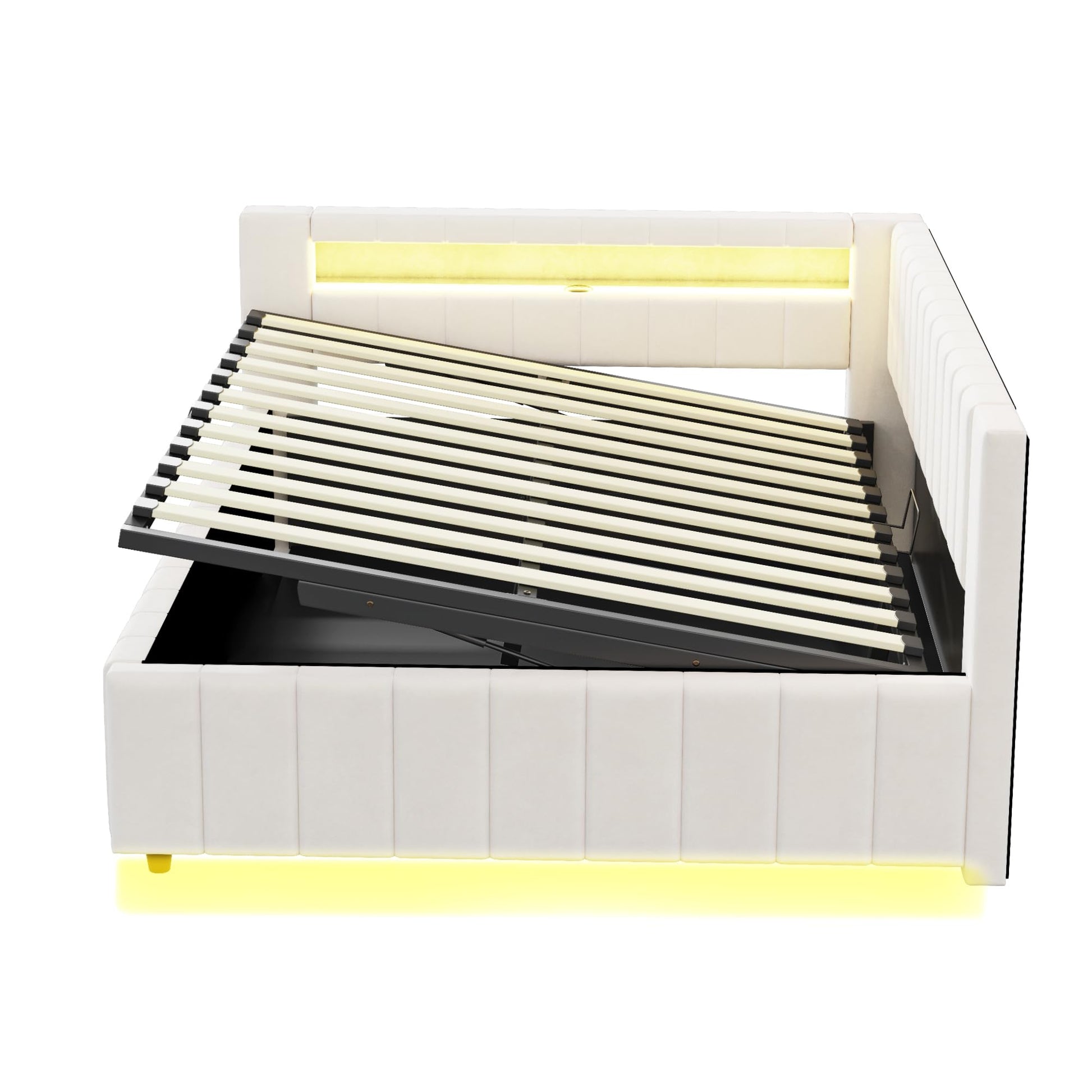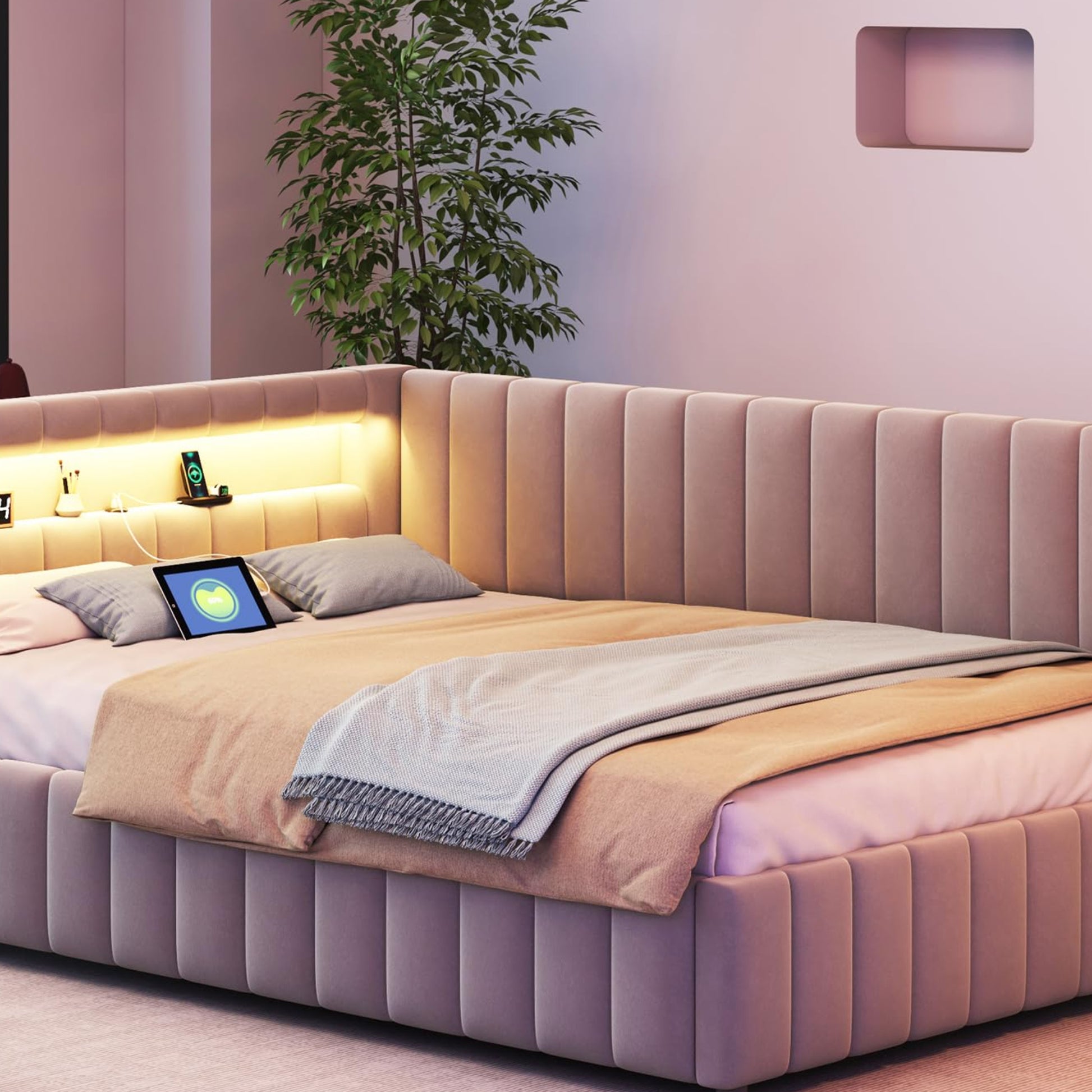 KEYIDE Upholstered Sofa Bed, 140 x 200 cm with LED Lighting and USB Charging, Bed Frame with Wooden Slatted Frame, Day Bed, Guest Bed, Youth Bed, Velvet Fabric, Without Mattress (Grey, 140 x 200)
