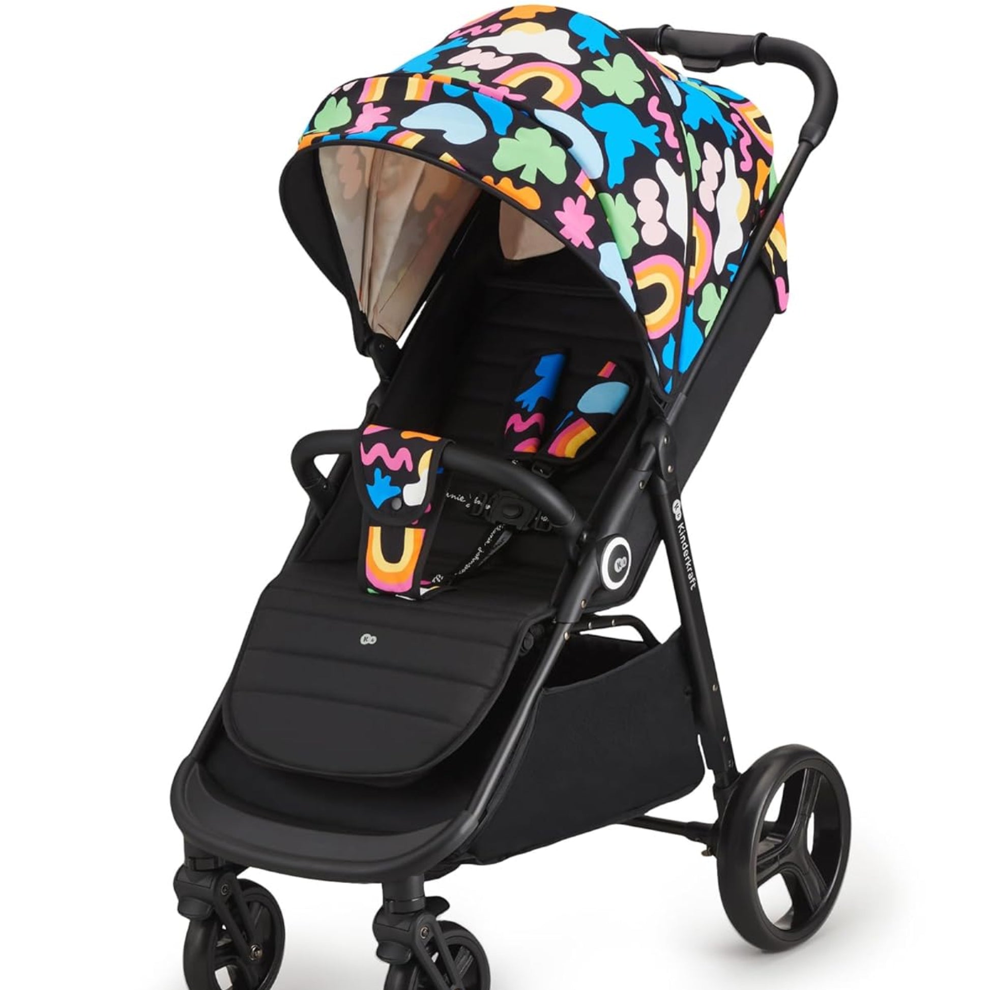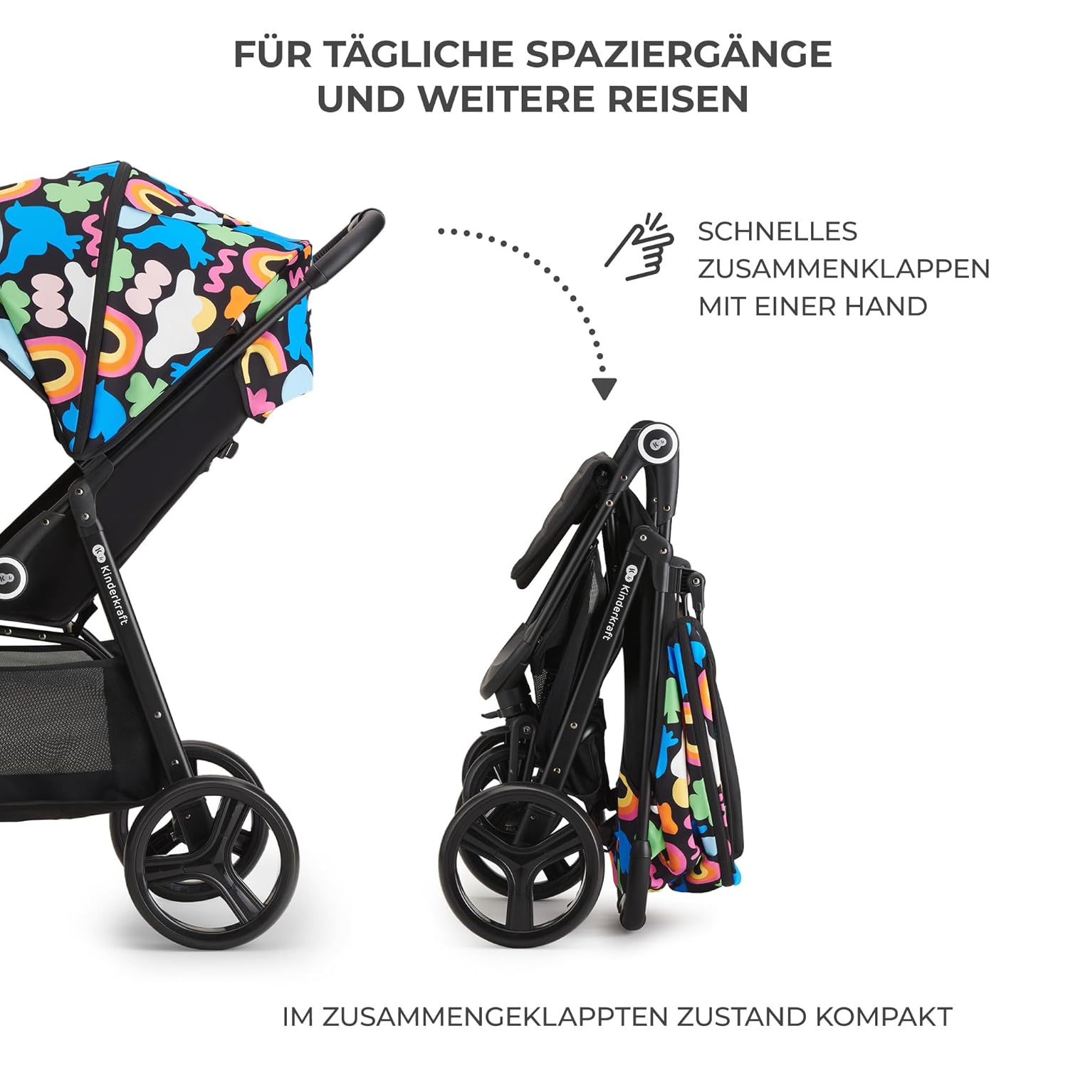 Kinderkraft Grande Plus Kinderkraft Buggy from Birth to 22 kg, Folding with One Hand, Reclining Position, Large Hood with Window, All 4 Wheels Cushioned, Spacious Seat, Happy Shapes