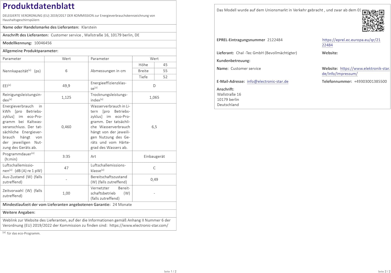 - Energy efficiency class D: one of the most efficient compact dishwashers, environmentally friendly and cost-saving - ideal as a built-in dishwasher for a more sustainable kitchen.