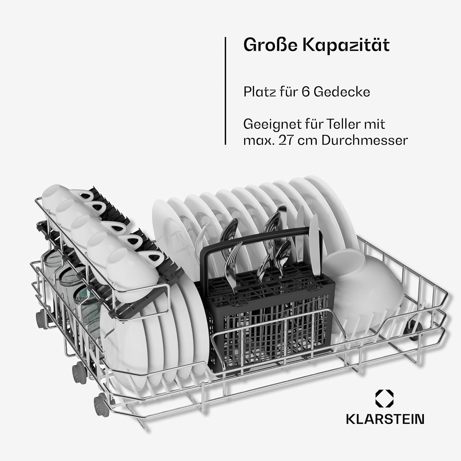 Compact dimensions of approx. 55 x 45 x 52 cm and weight of 26.5 kg. Trust in the quality of the Klarstein Havasia UV 6 Secret and experience easy dishwashing