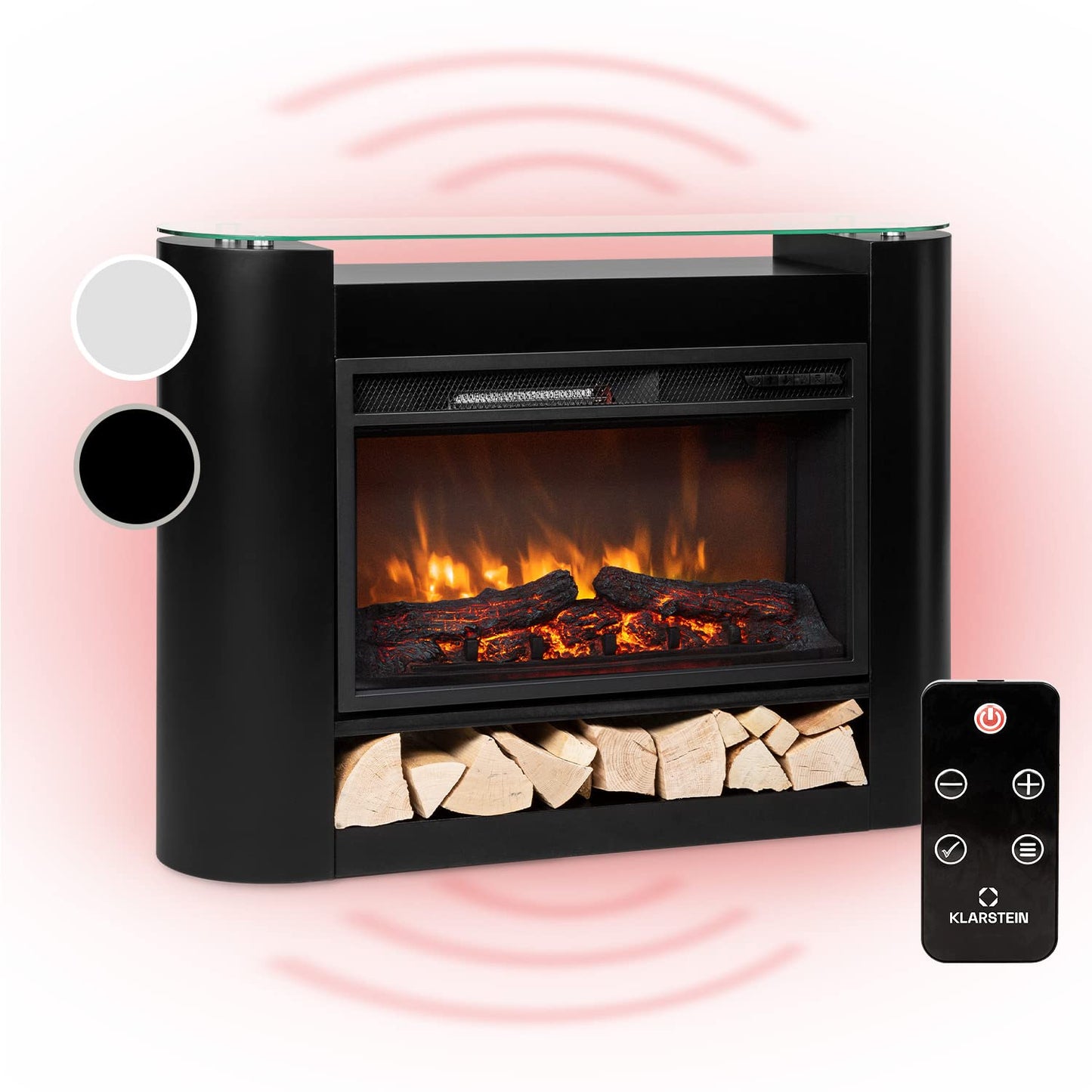 Klarstein Elektrokamin, Elektro Heizungen für Wohnzimmer & Innenräume, Elektrischer Kamin mit LED Flammen, Sparsamer Elektroofen, Heizlüfter mit Timer, Einstellbarer Thermostat, Heizung 1800 W