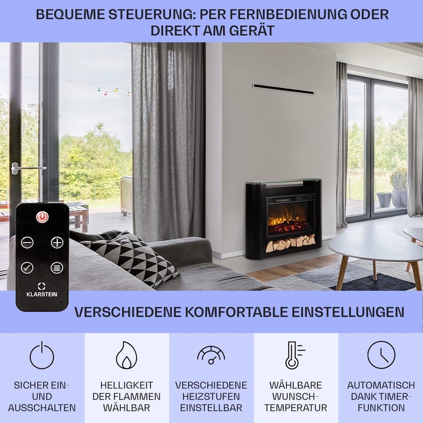 - EINFACHE BEDIENUNG DER ELEKTRO HEIZUNGEN: Mit der mitgelieferten Fernbedienung kannst du diesen sicheren elektrischen Kamin jederzeit und von überall in deinem Zuhause einfach ein- und ausschalten.