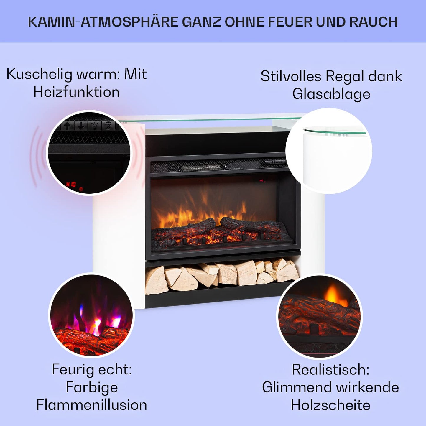 - GEMÜTLICH & ROMANTISCH: Der elegante Elektrokamin zaubert realistische Flammenillusionen. Das weiche Licht von diesem Kamin imitiert täuschend echt flackernde Flammen und knisternde Glut und verbreitet sofort eine gemütliche, romantische Atmosphäre.