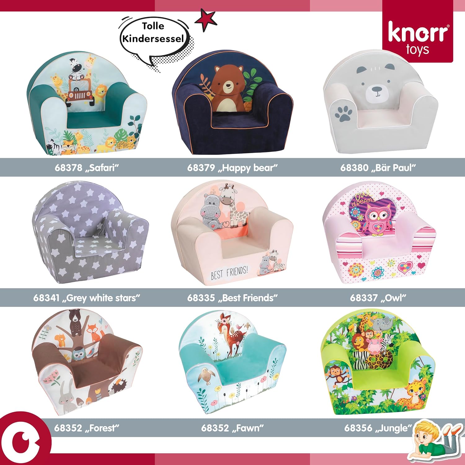 - This children's chair "Best Friends" by knorr toys inspires all kids with its comfort. Not only the seat but also the armrests are made of soft foam and covered with cotton