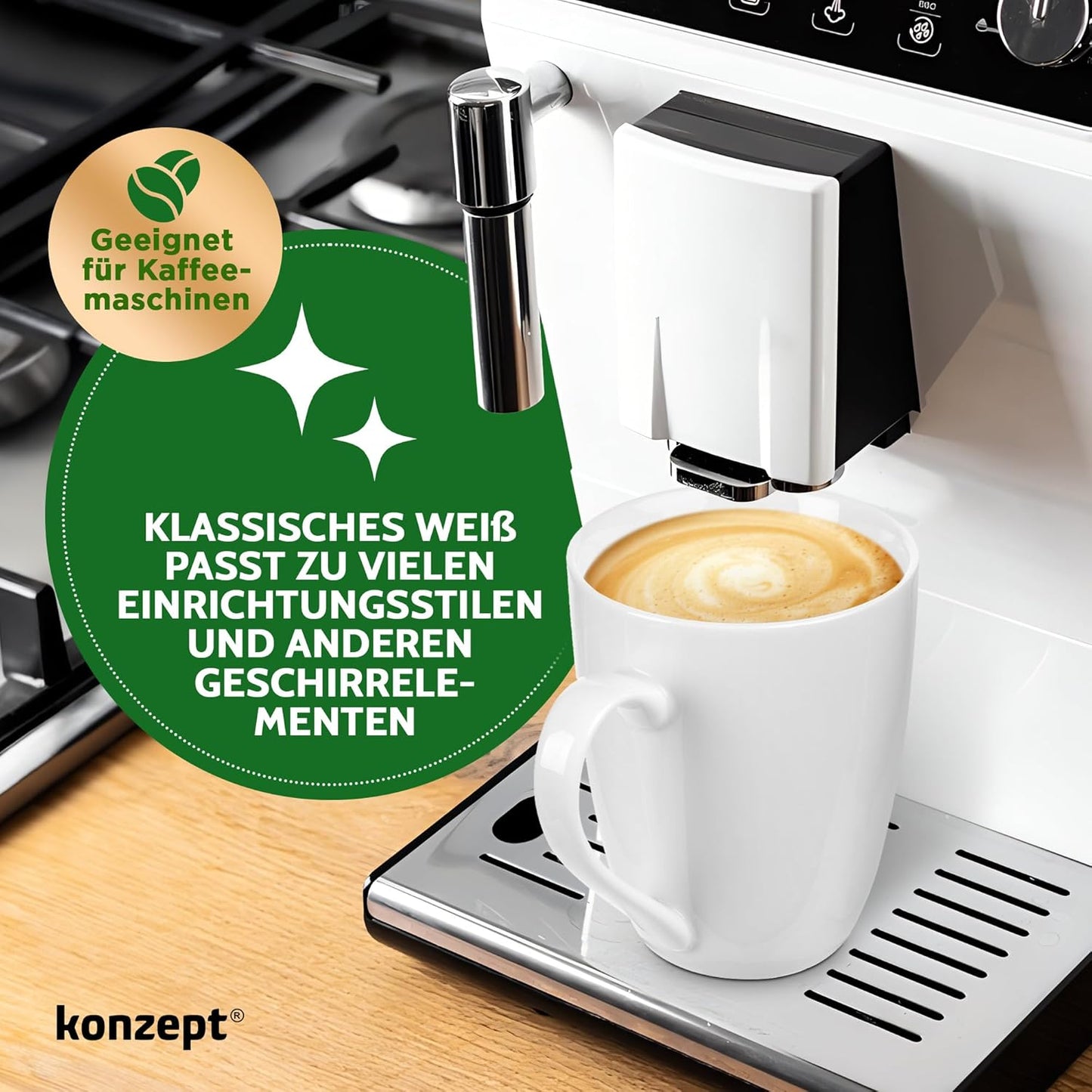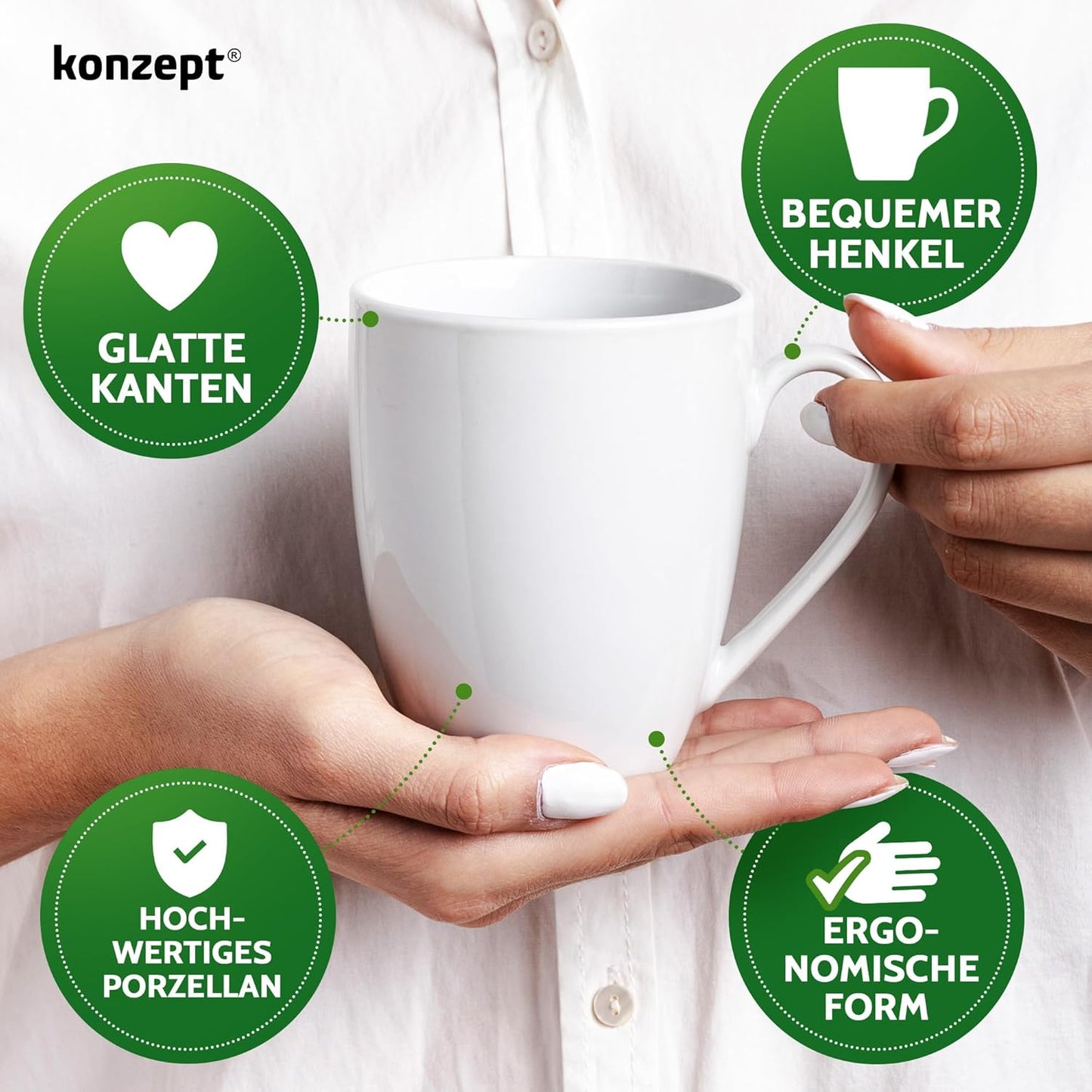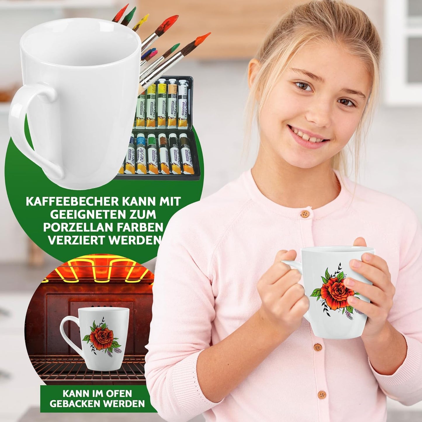 KONZEPT Kaffeebecher aus Porzellan 300 ml, Kaffeetassen Set 6er, Tassen zum Bemalen mit Henkel, Teetassen in Weiß
