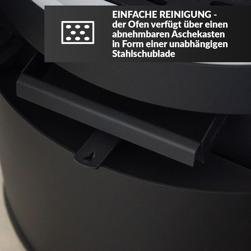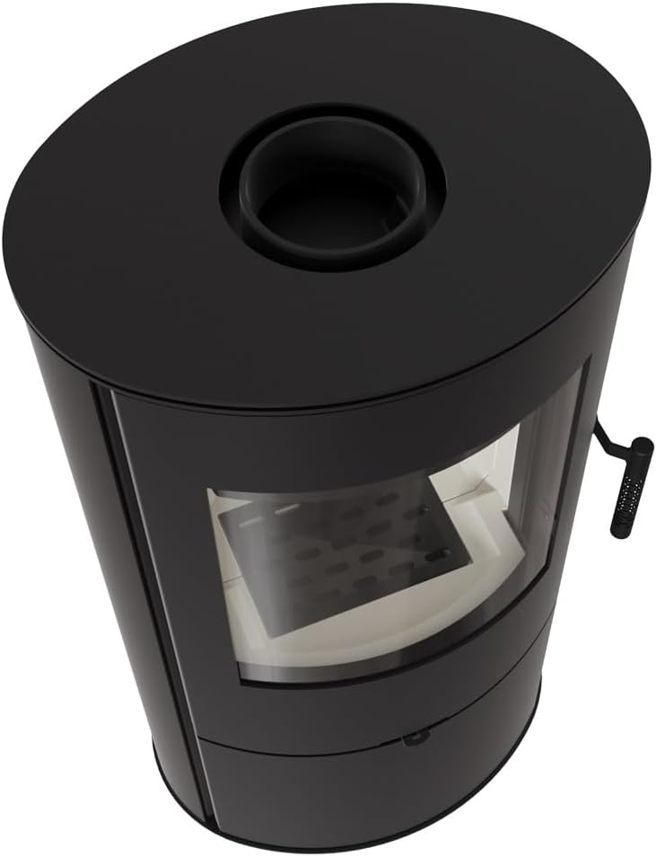 KRATKI Fireplace Made of Steel Rollo Ready Set Diameter 150 7 kW with Indoor Air Independent, Blass Cladding, Freestanding, BImSchV 2, Dust Outlet, 150 mm, EEK A Fireplace HKI
