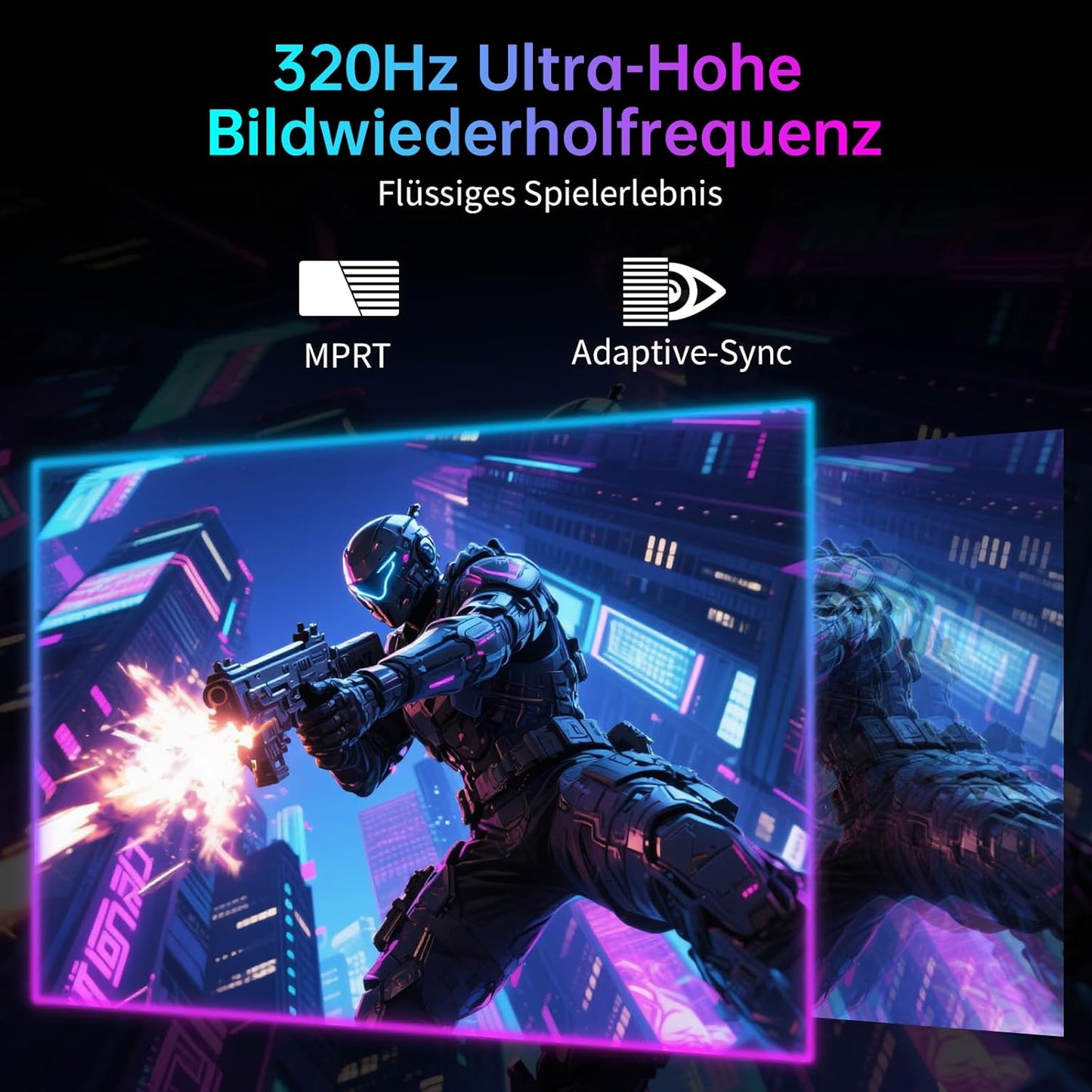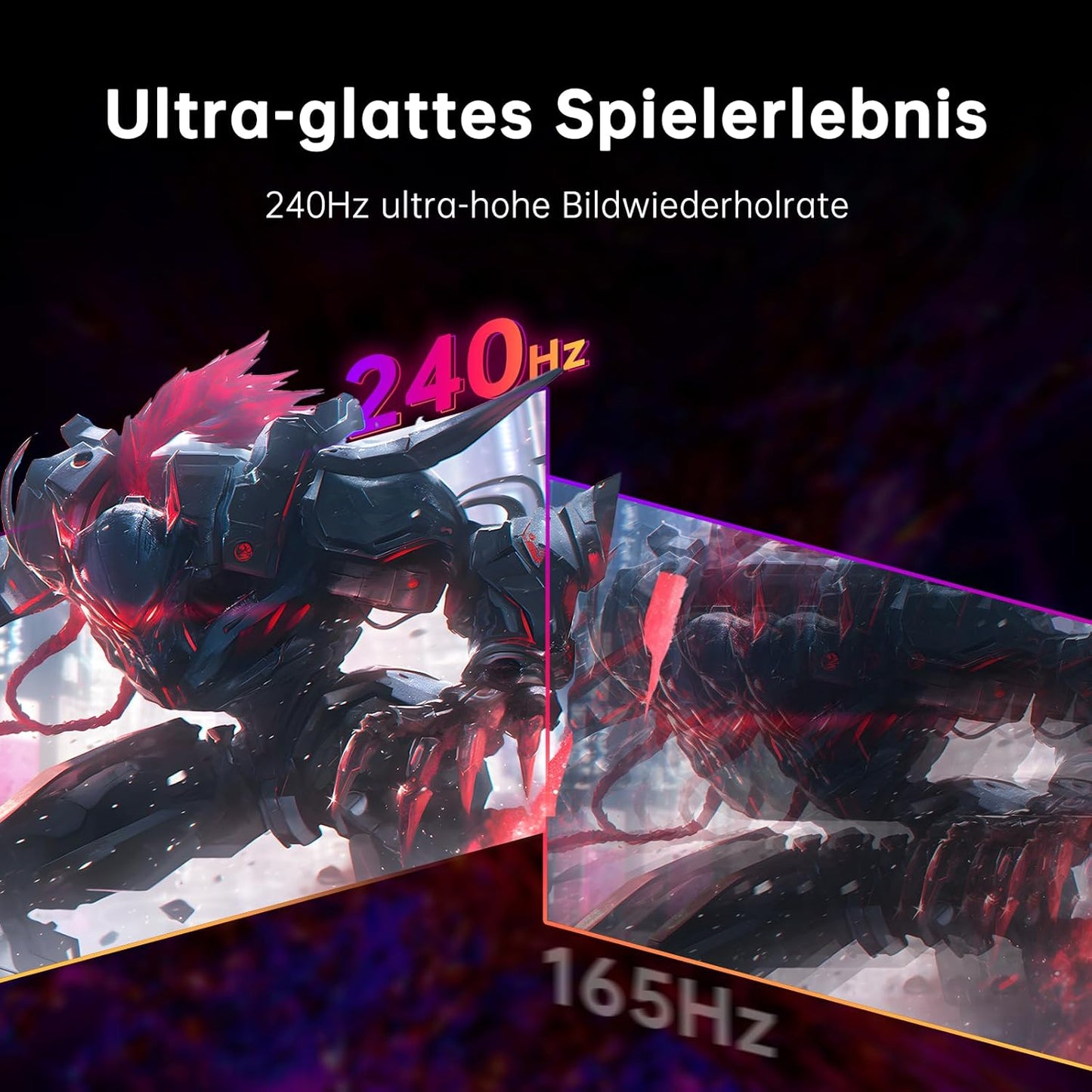 - Ultra-schnell: Die hohe Bildwiederholfrequenz von 240 Hz und die Reaktionszeit von 1 ms helfen Gamern, in rasanter Action die Nase vorn zu haben. Die Adaptive-Sync-Technologie eliminiert Tearing und Bewegungsunschärfe und schafft so einen Vorteil für alle Gamer.