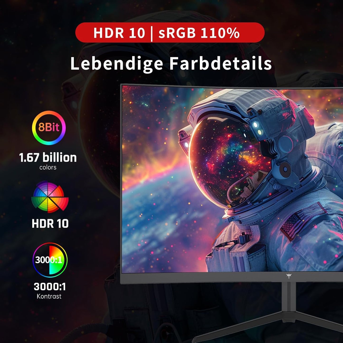 - Gaming Monitor Curved: Die 1000R-Krümmung erweckt die Gaming-Welt zum Leben und lässt den Spieler in sie eintauchen. Das große 32-Zoll-Display ist direkt auf den Betrachter ausgerichtet und entspricht der Krümmung des menschlichen Auges.