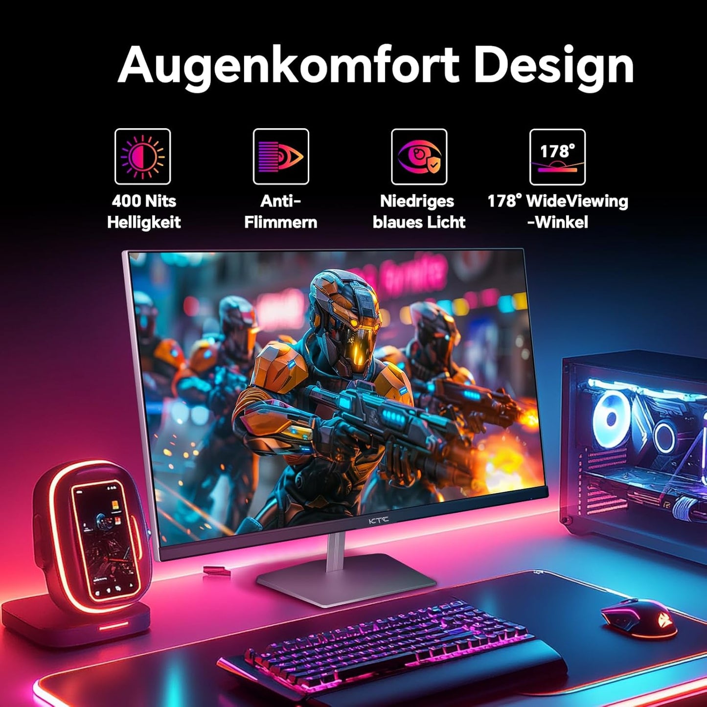 KTC 32 Zoll Monitor Curved 1000R, 2K WQHD (2560x1440p) 240Hz Gaming Monitor, 1ms, Adaptive Sync, 122% sRGB, 4000:1 Kontrast, 2 x DP 1.4 (240Hz), 2 x HDMI 2.0 (144Hz), Unterstützung von Tilt und VESA