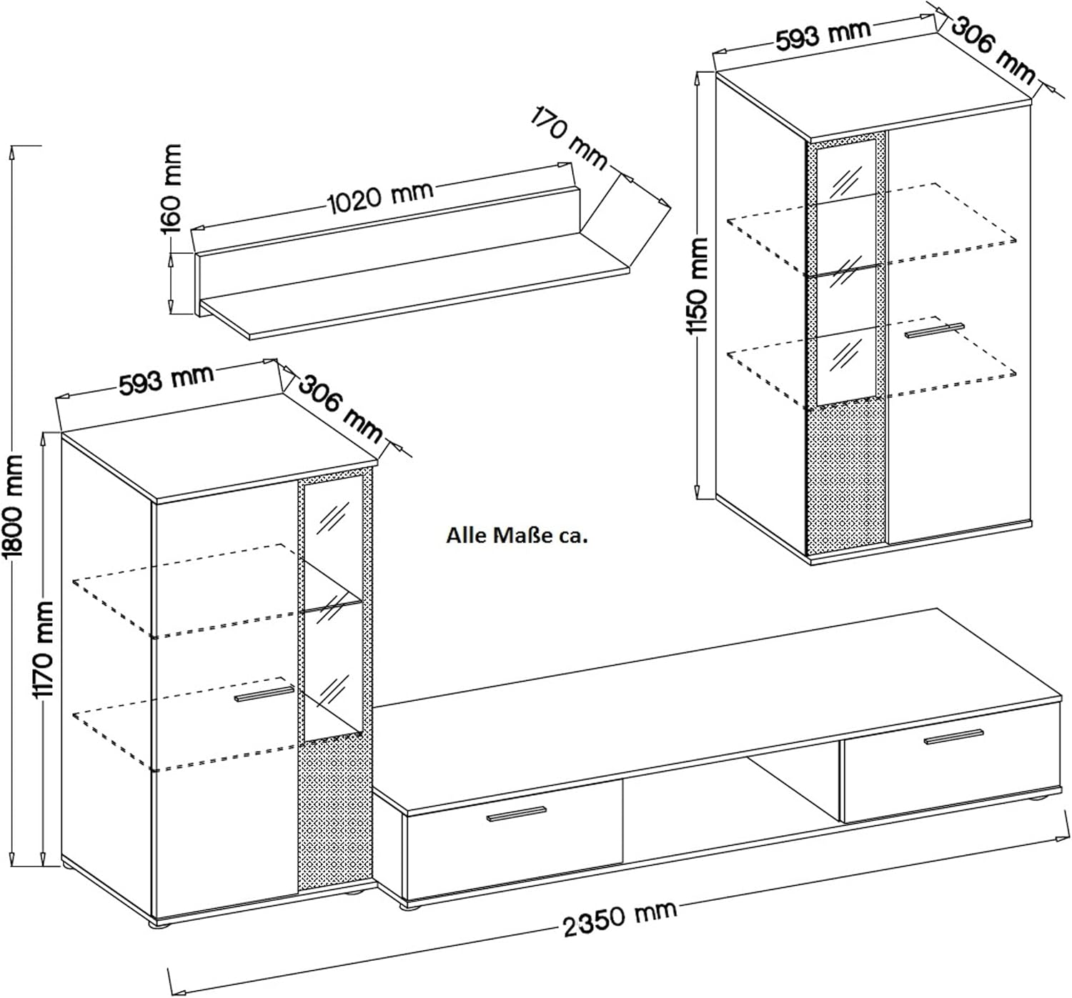 Kuechen-preisbombe Top Salsa Wall Unit Unit Living Room Sonoma Oak Matt + Black