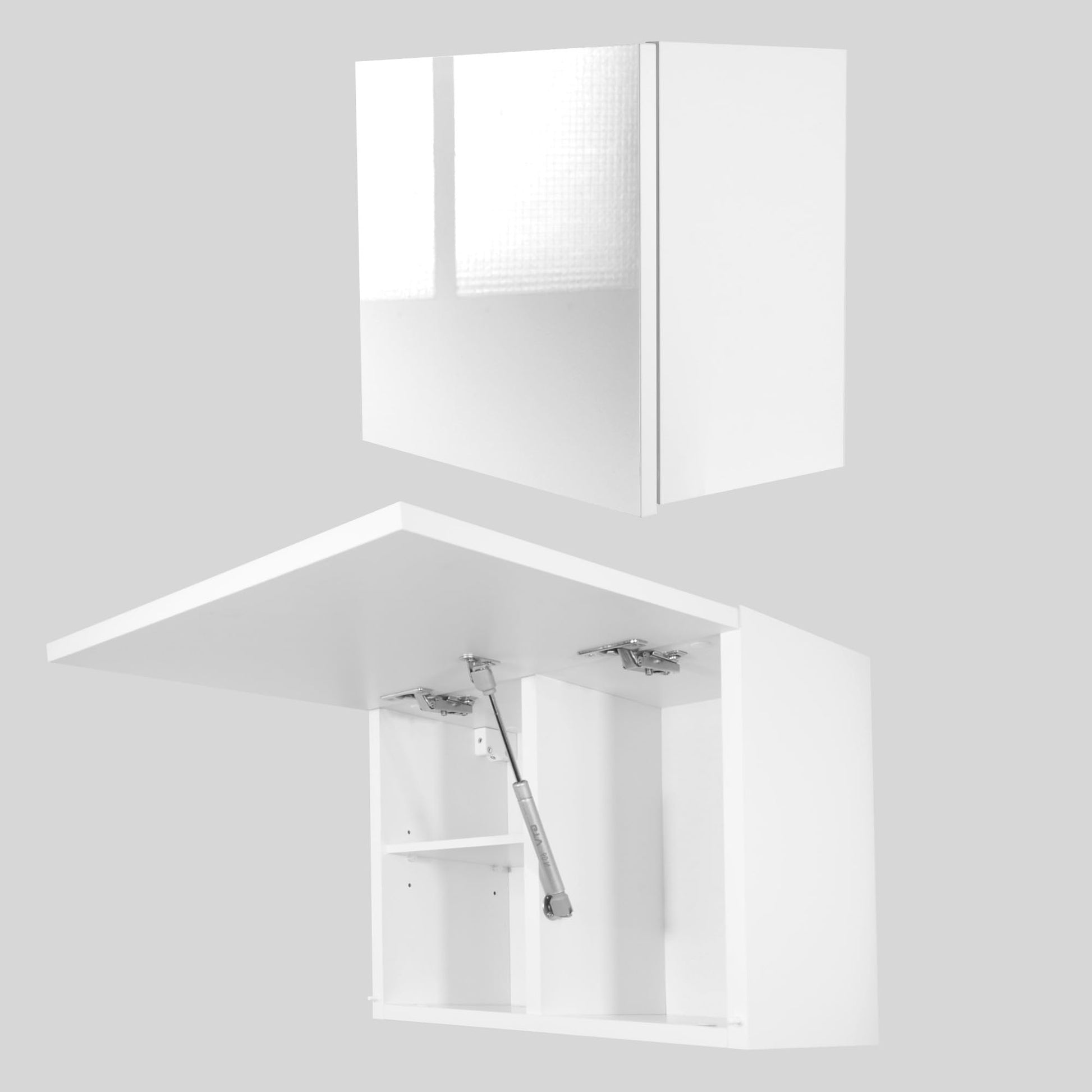 - Stylish minimalism: the modern, handle-less design of the hanging wall cabinet blends harmoniously into any interior style. Whether matte or glossy, this bathroom cabinet is a timeless addition to your home that impresses with its simple elegance.