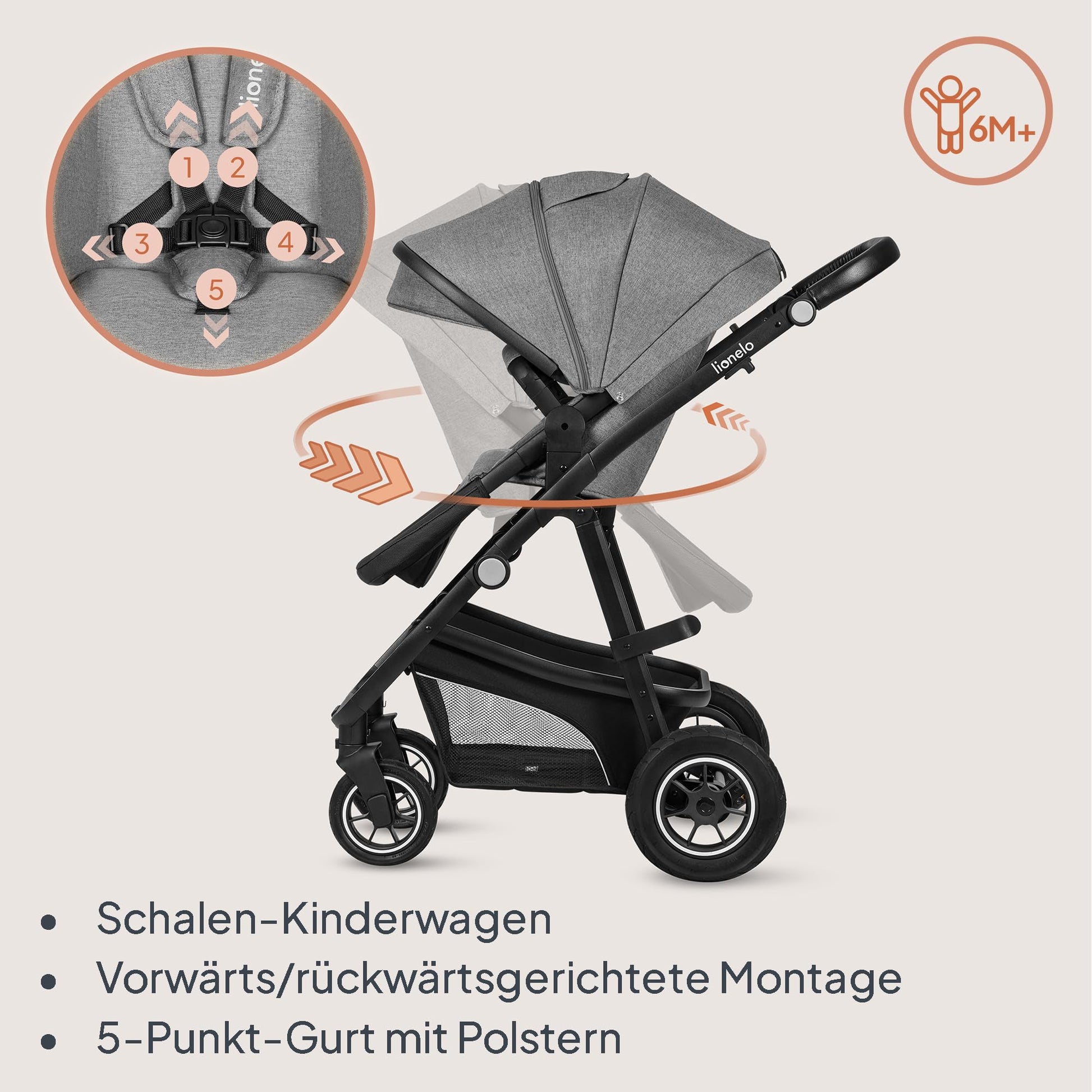 LIONELO Bianka Pushchair 3-in-1 up to 22 kg Baby Carrycot Car Seat Foldable Travel System Adjustment of the Backrest Wheels 360o Shock Absorber Hood XXL