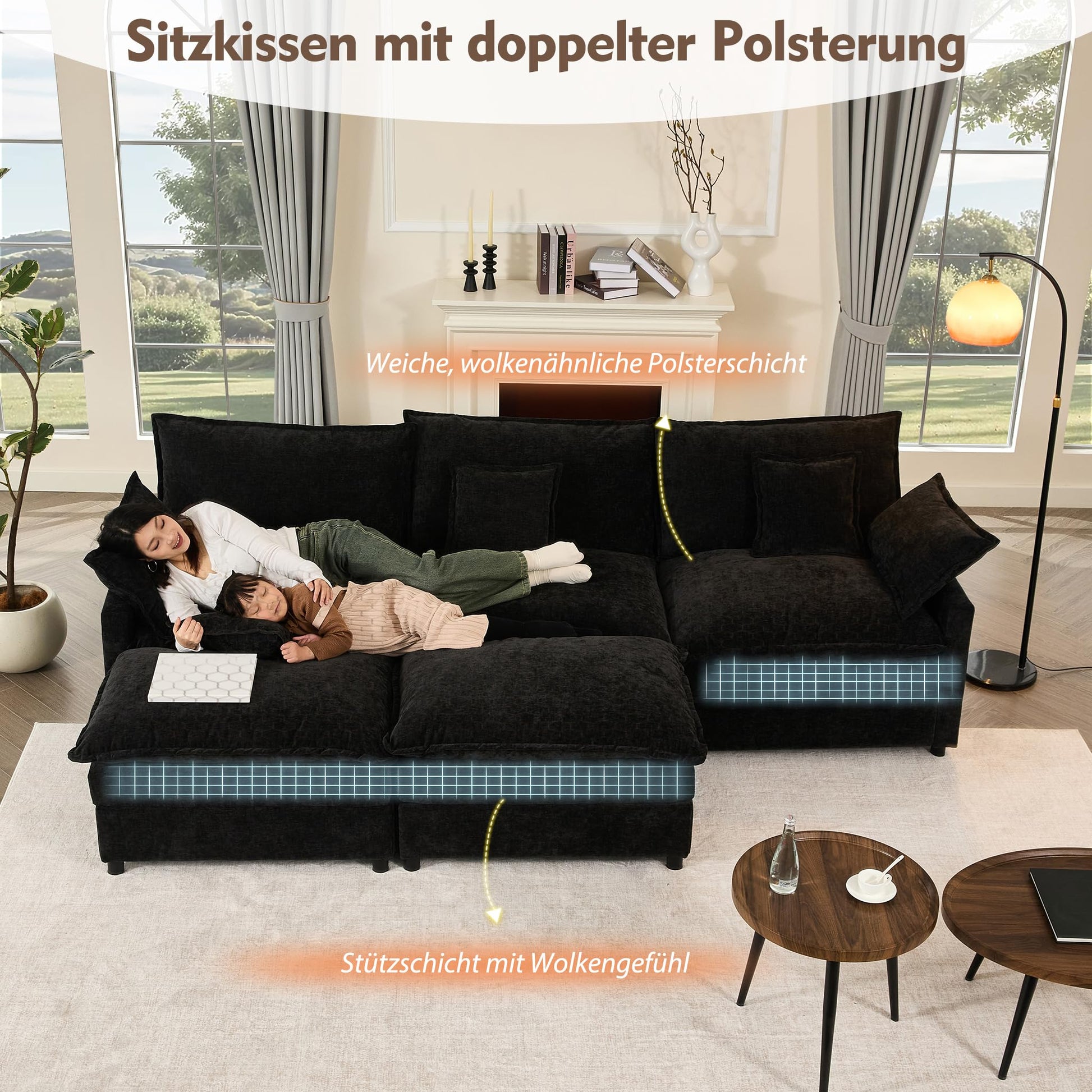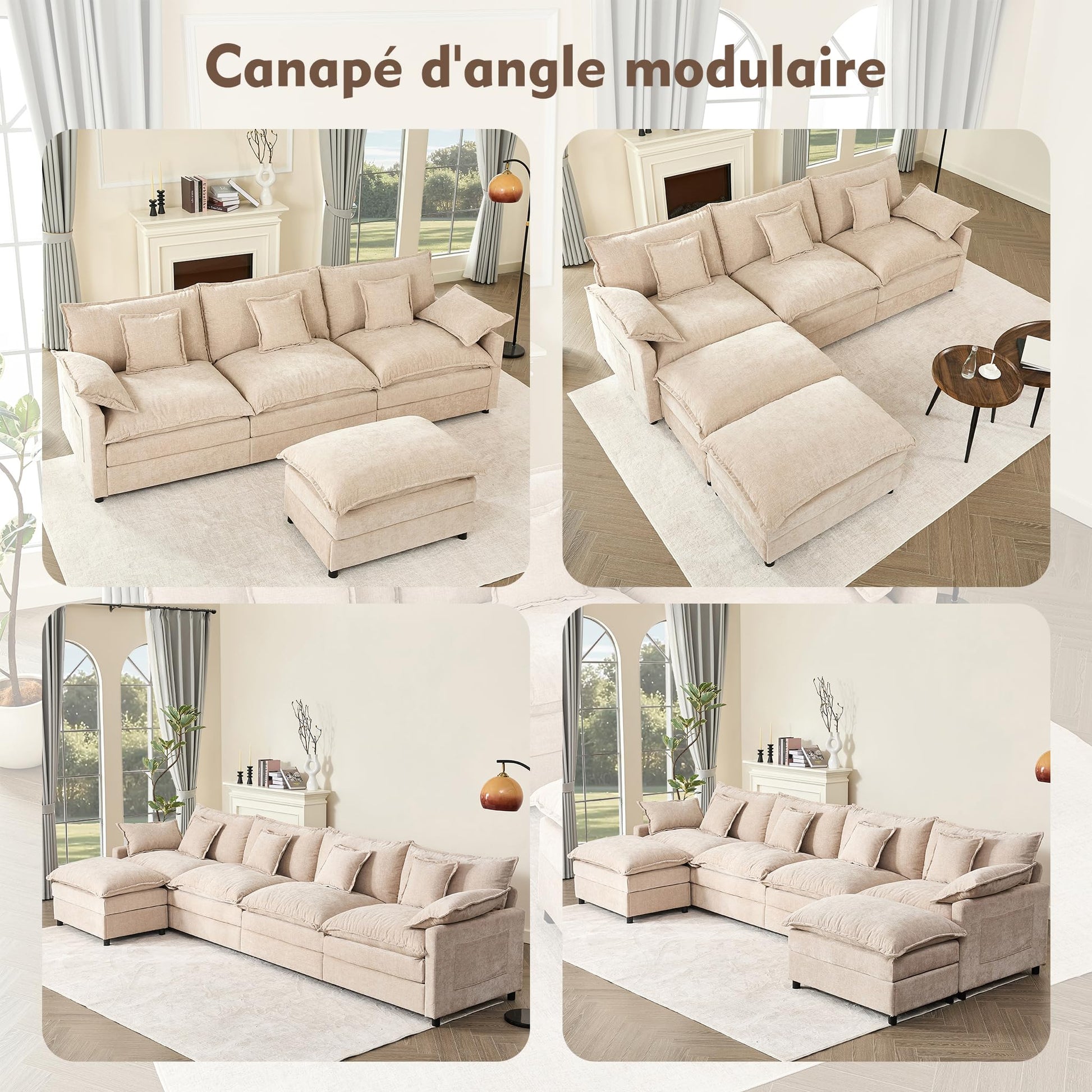 Litbird U-förmiges modulares Sofa 3-Sitzer Ecksofa mit Hocker, tiefes Sitzdesign, Cloud Couch für Wohnzimmer(Hellbraun)