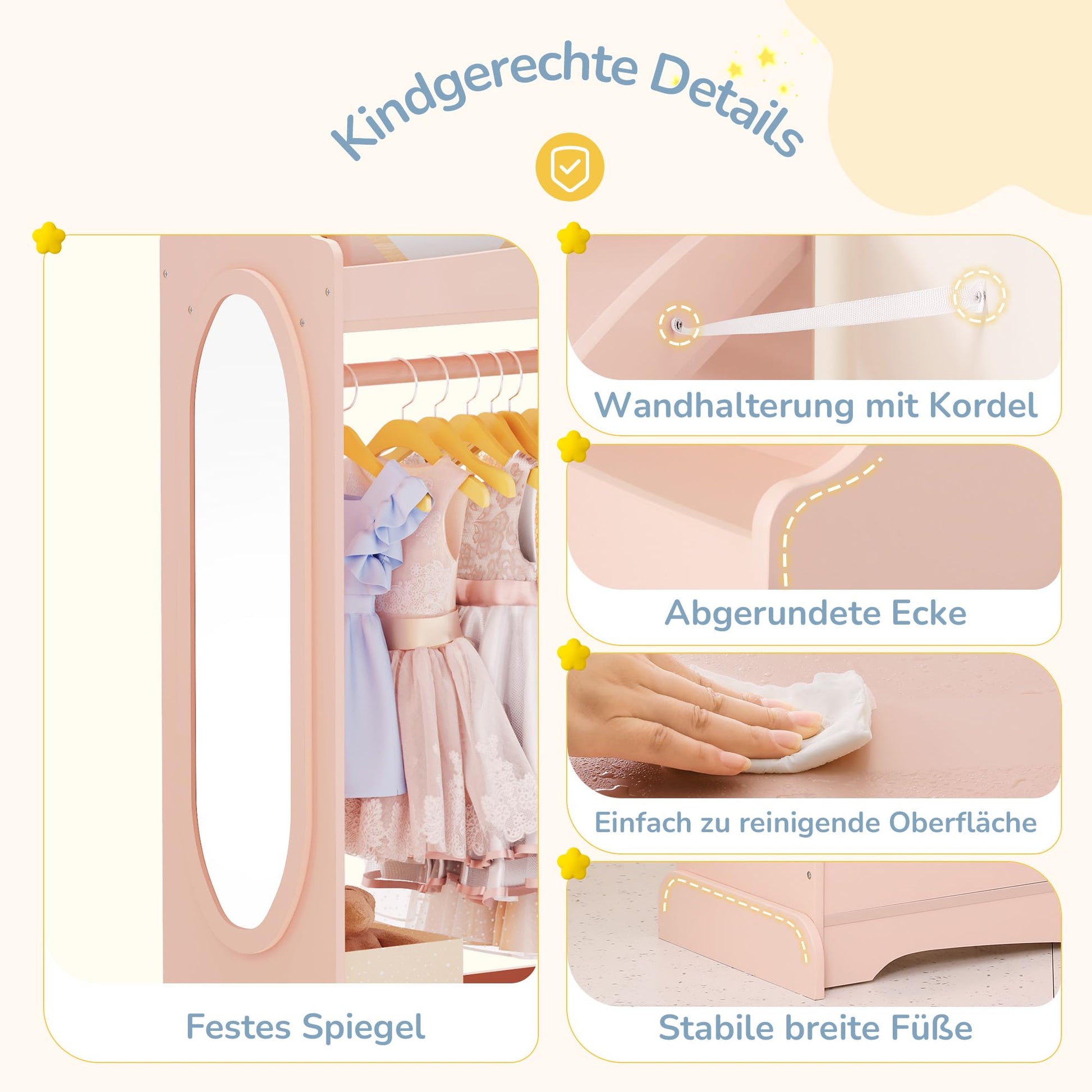 - Integrated full-length mirror: the children's wardrobe has a firmly mounted full-length mirror, so that children can see themselves from head to toe when trying on. The secure attachment prevents tipping over.