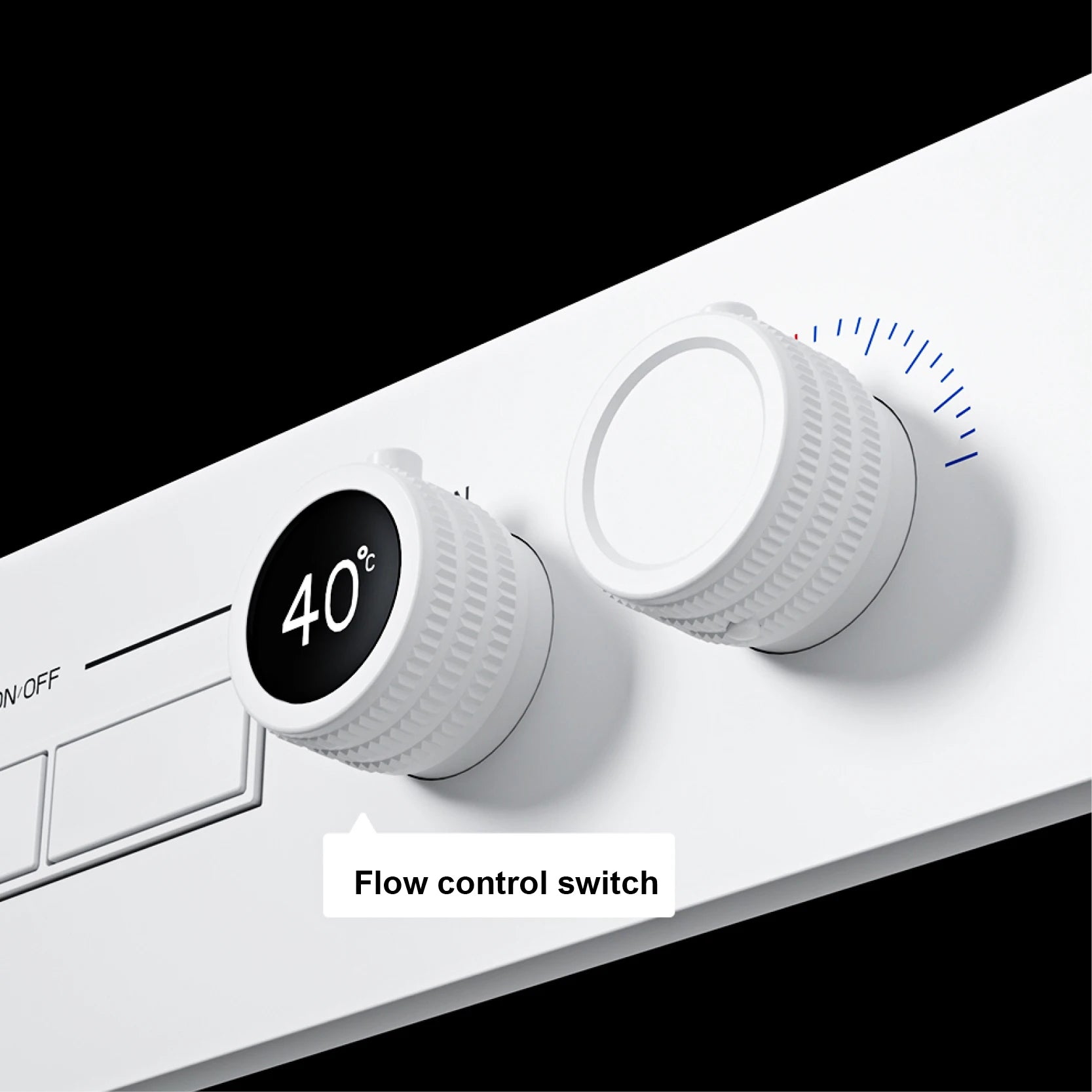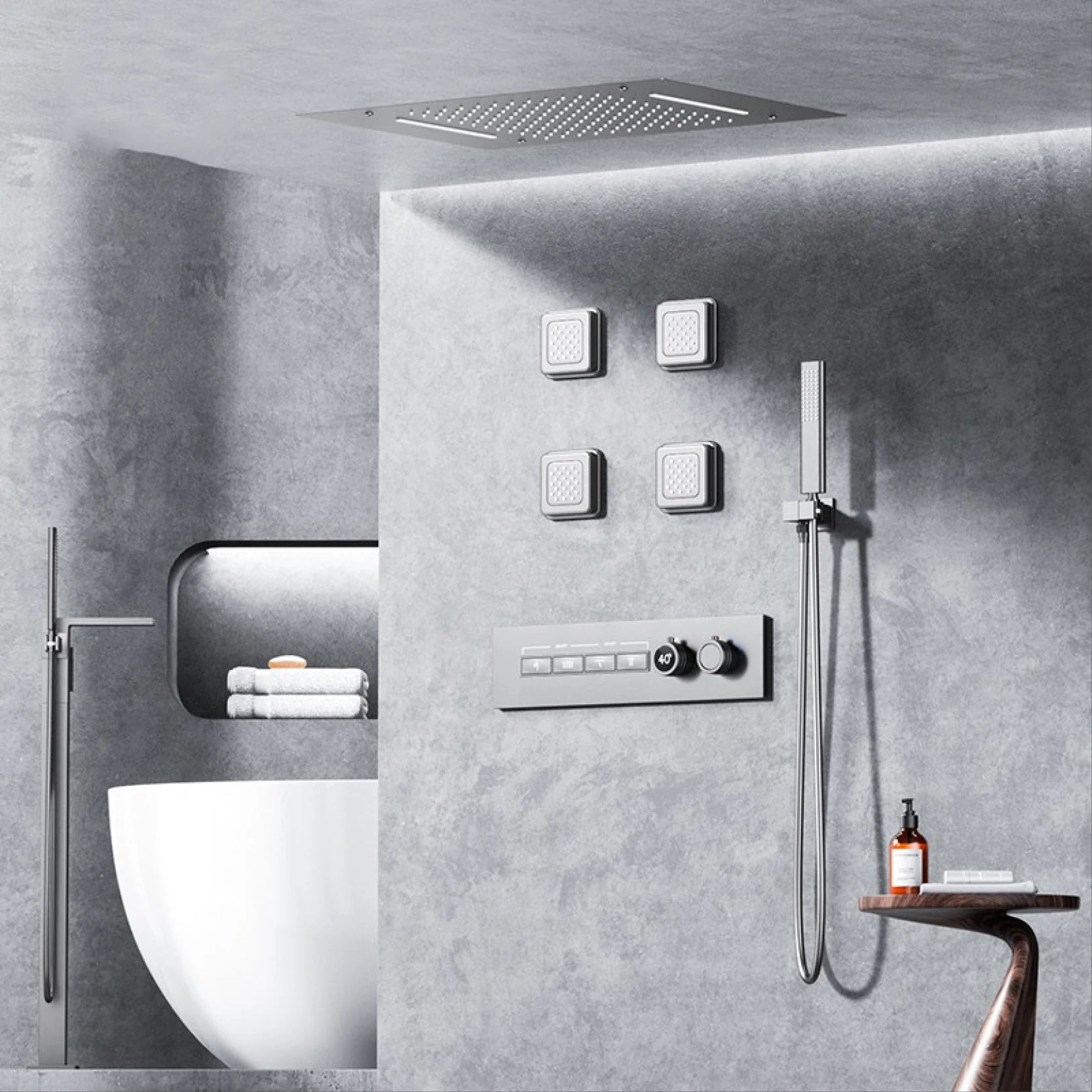 Luxury Gun Grey Brass Thermostatic Shower System Ceiling-Embedded Rainfall&Waterfall Outlet with LED Display Bathroom Mixer Tap