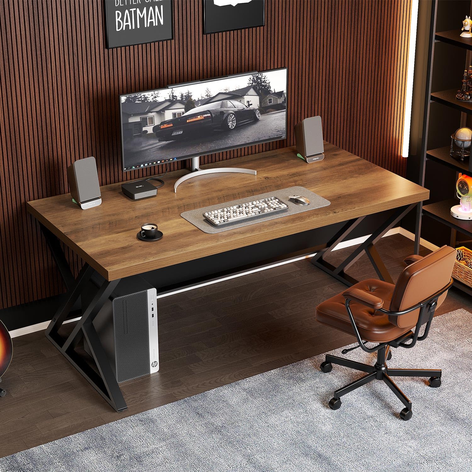 LVB Modern Computer Desk Industrial Home Office with Storage Space Metal Wood Desk Study Computer Desk for Bedroom Simple Gaming Desk Rustic Brown