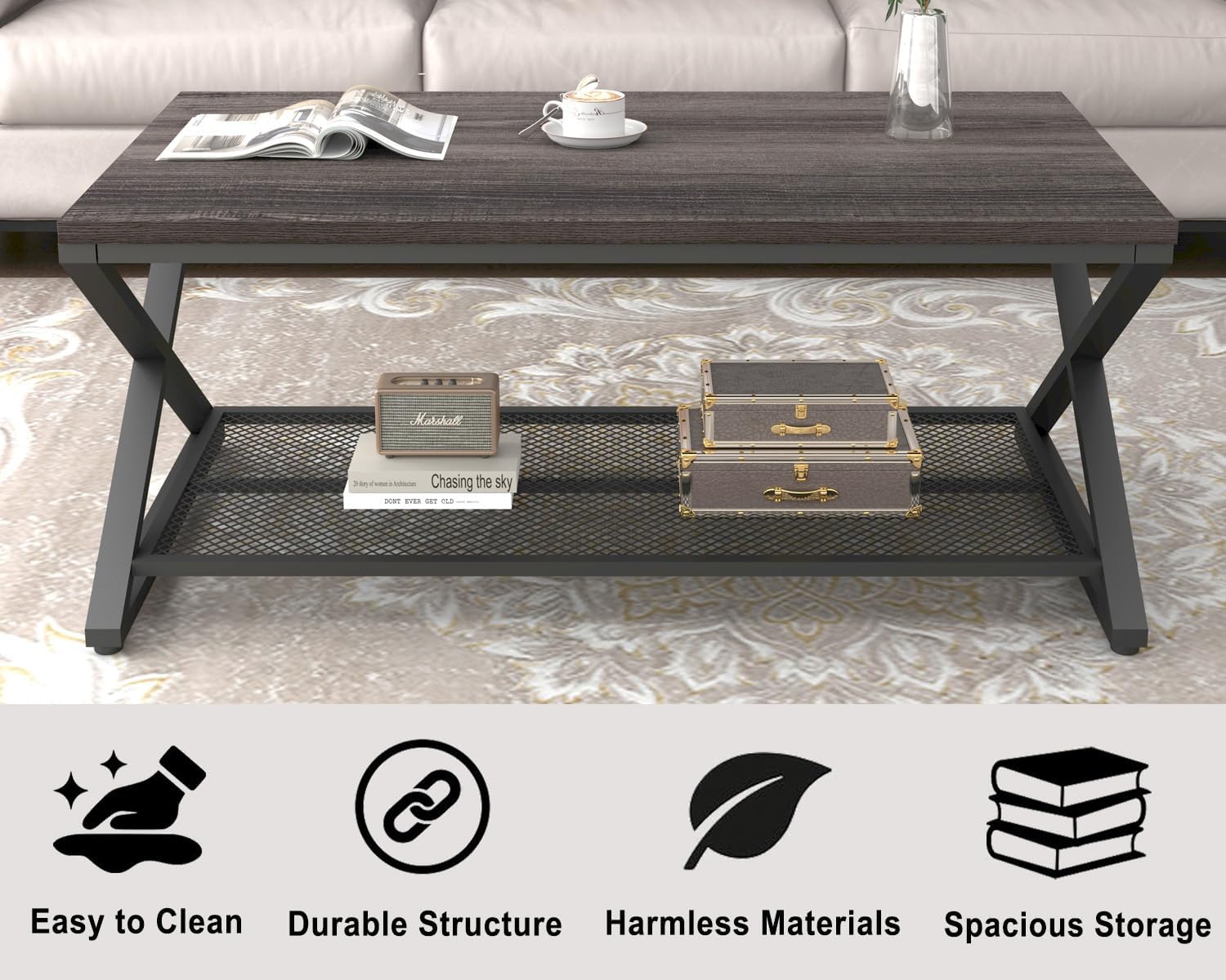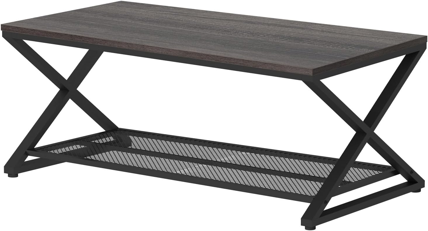 - Stability: Our rectangular coffee table with mesh shelf offers exceptional stability thanks to the X-shaped metal support, the sturdy coffee table metal frame and adjustable feet. This sturdy construction prevents tilting, wobbling and protects the floor - ideal as a living room table, couch side table and vintage furniture for any living room furniture or retro furniture ambience.