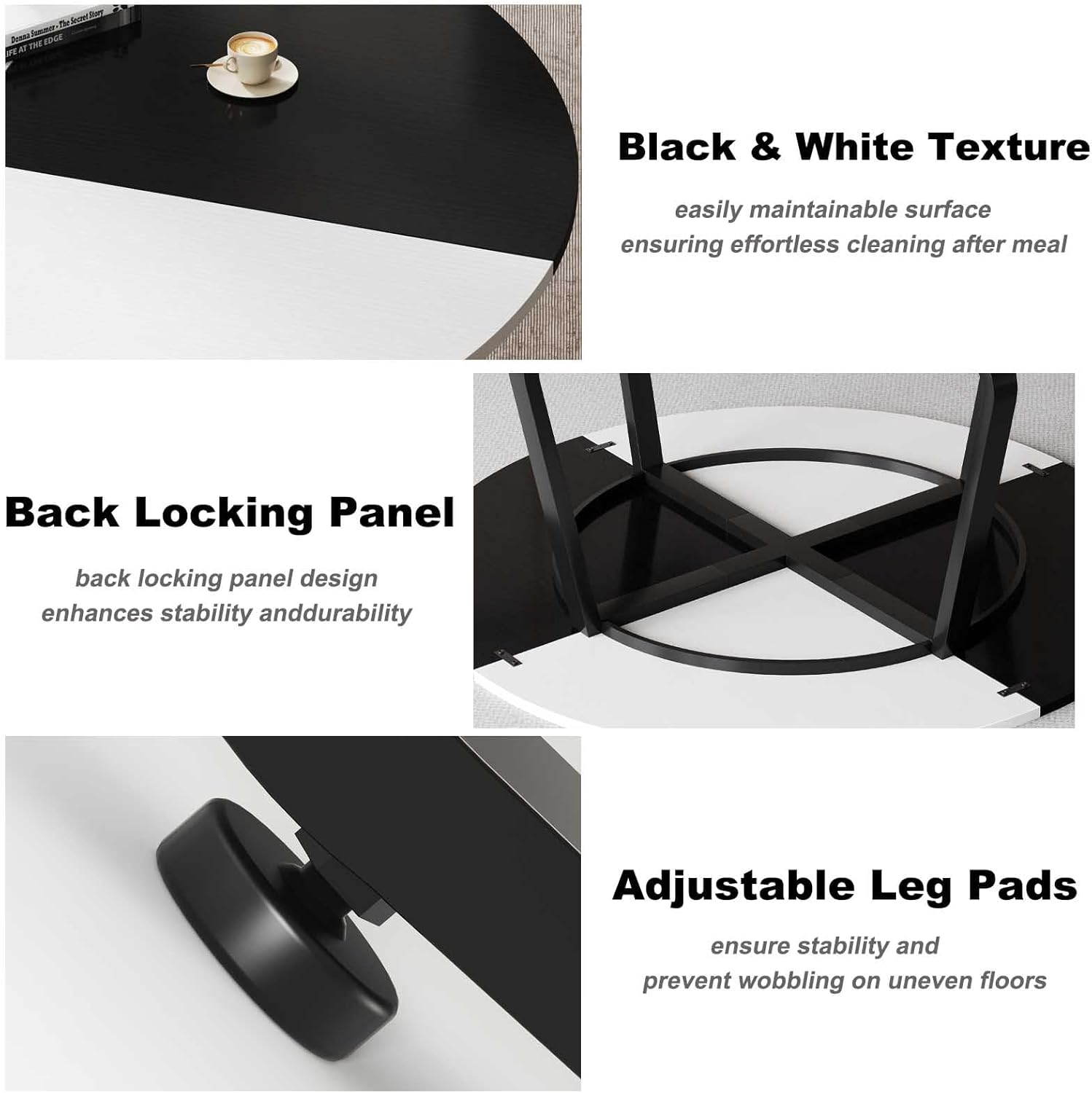 - Strong and durable: The round kitchen table is made of high-quality materials for excellent stability and durability. It is designed from MDF tabletop and metal base to provide a sturdy and durable experience. In life, your dining room table or white coffee table is fixed on any floor without taking up the space for the leg extension.