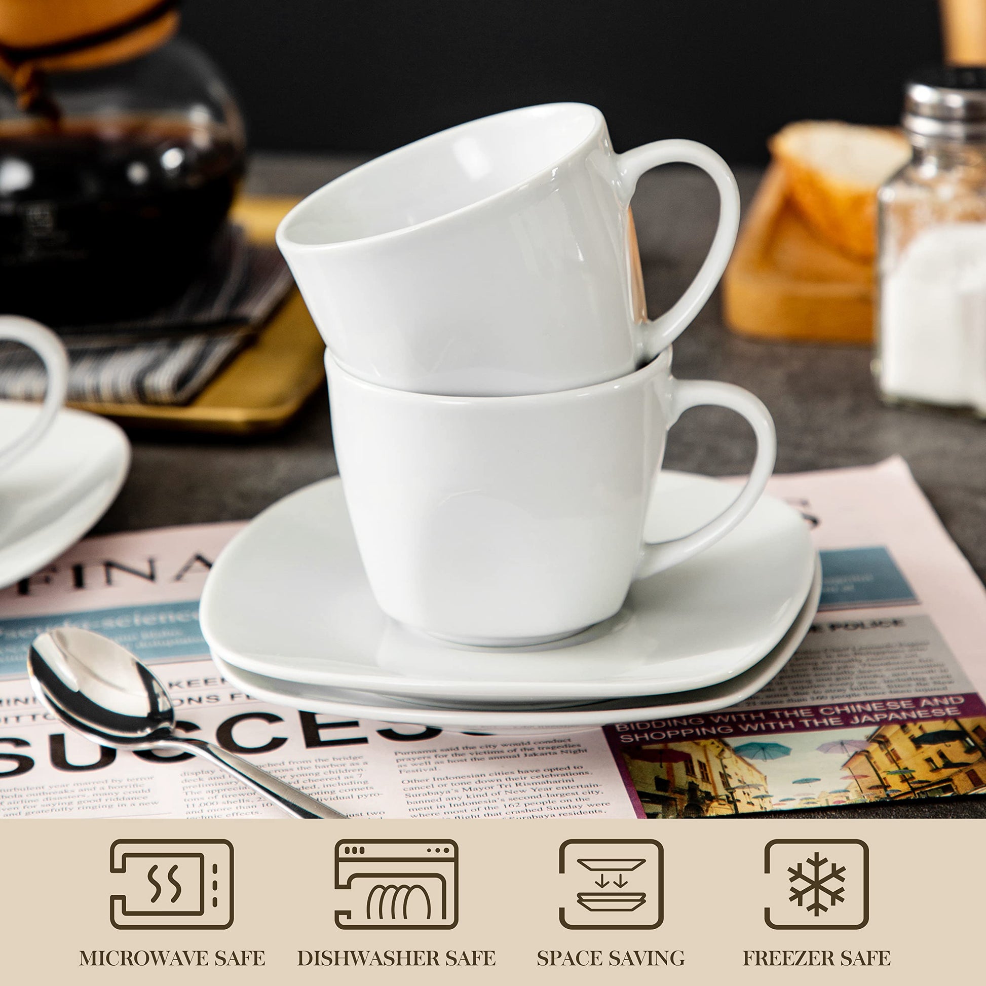 - Stackable and space-saving – Stackable plates offer space for more tableware in the cupboard, the elegant and smooth glaze is non-toxic and harmless and has been FDA certified, all plates are both dishwasher- and microwave-safe and therefore extremely easy to clean.