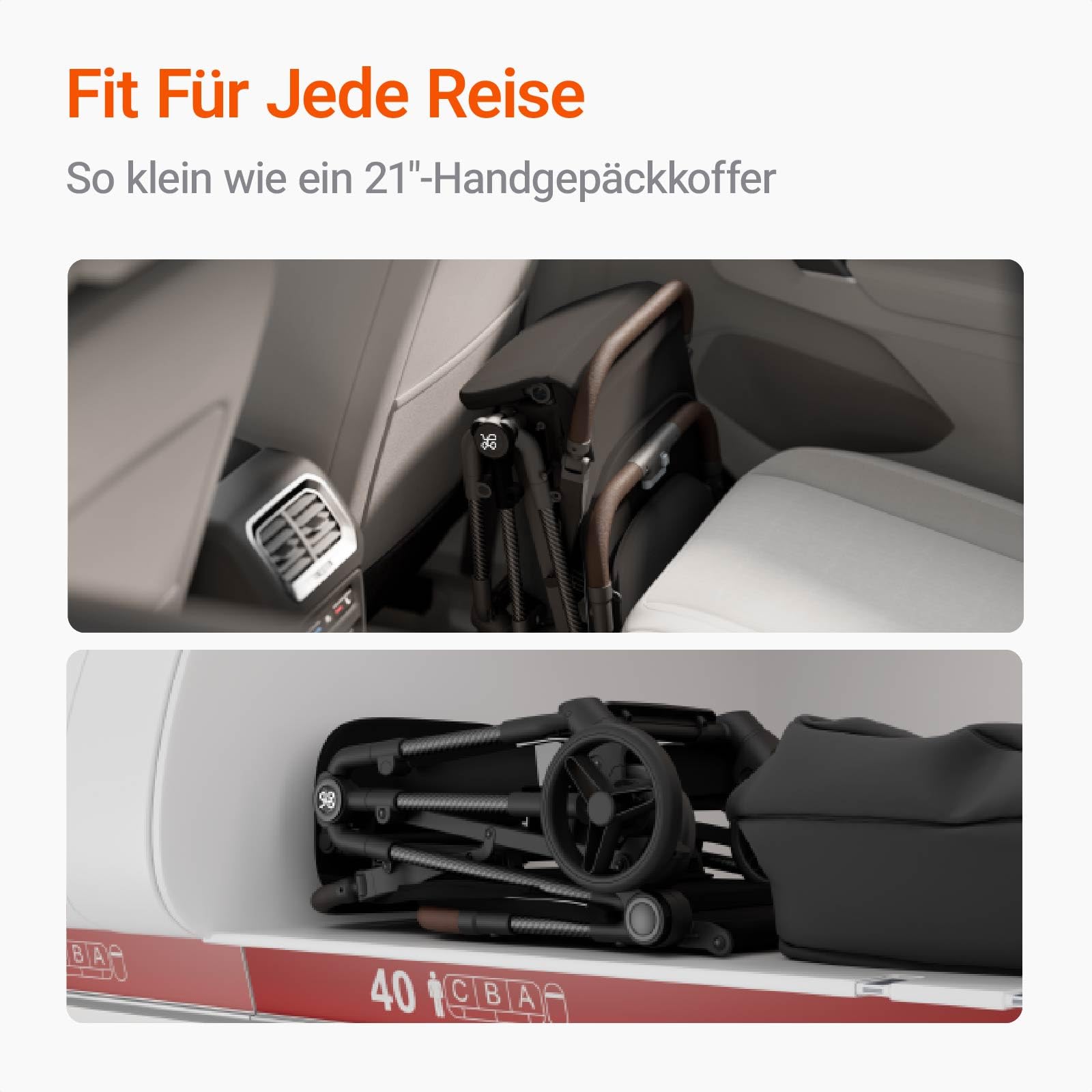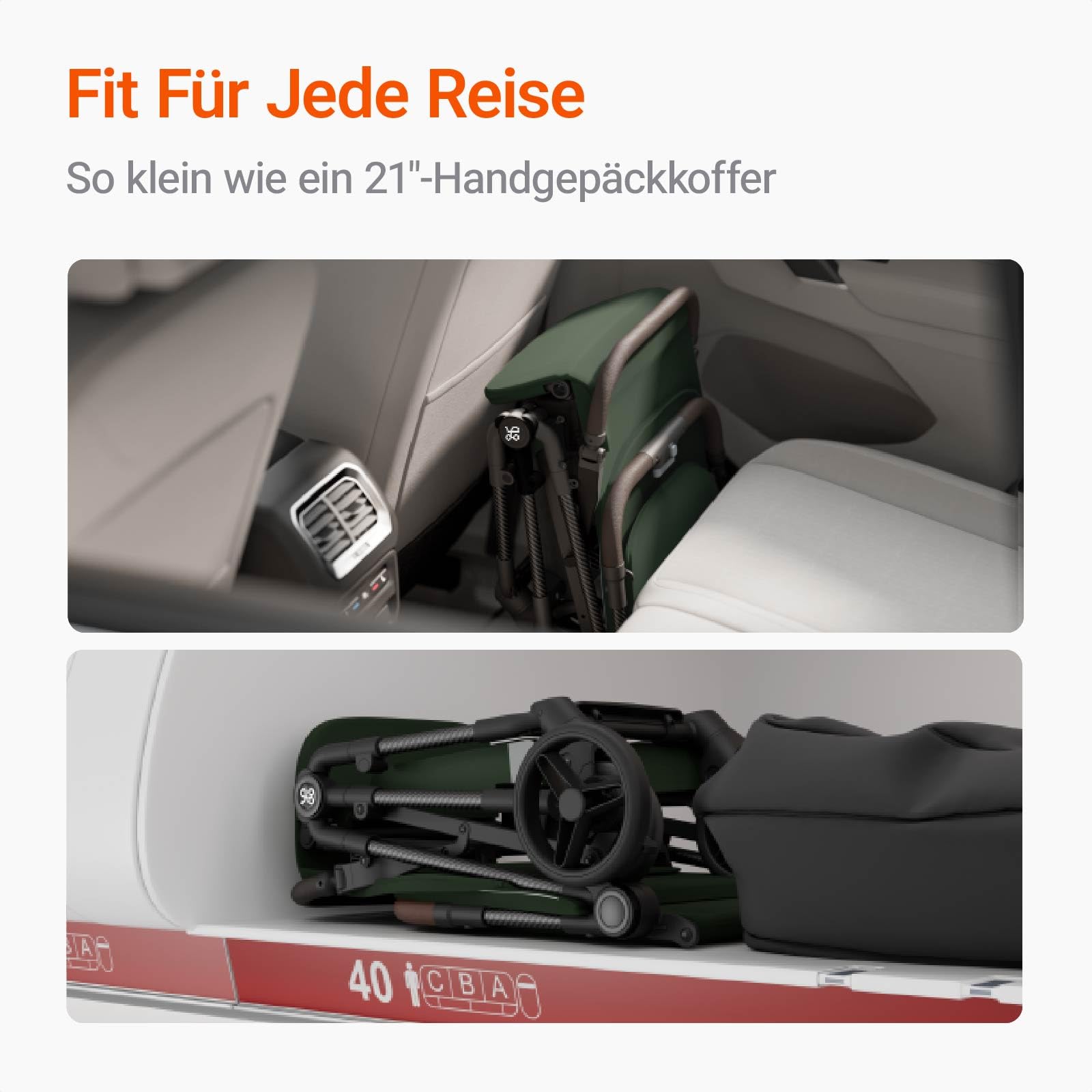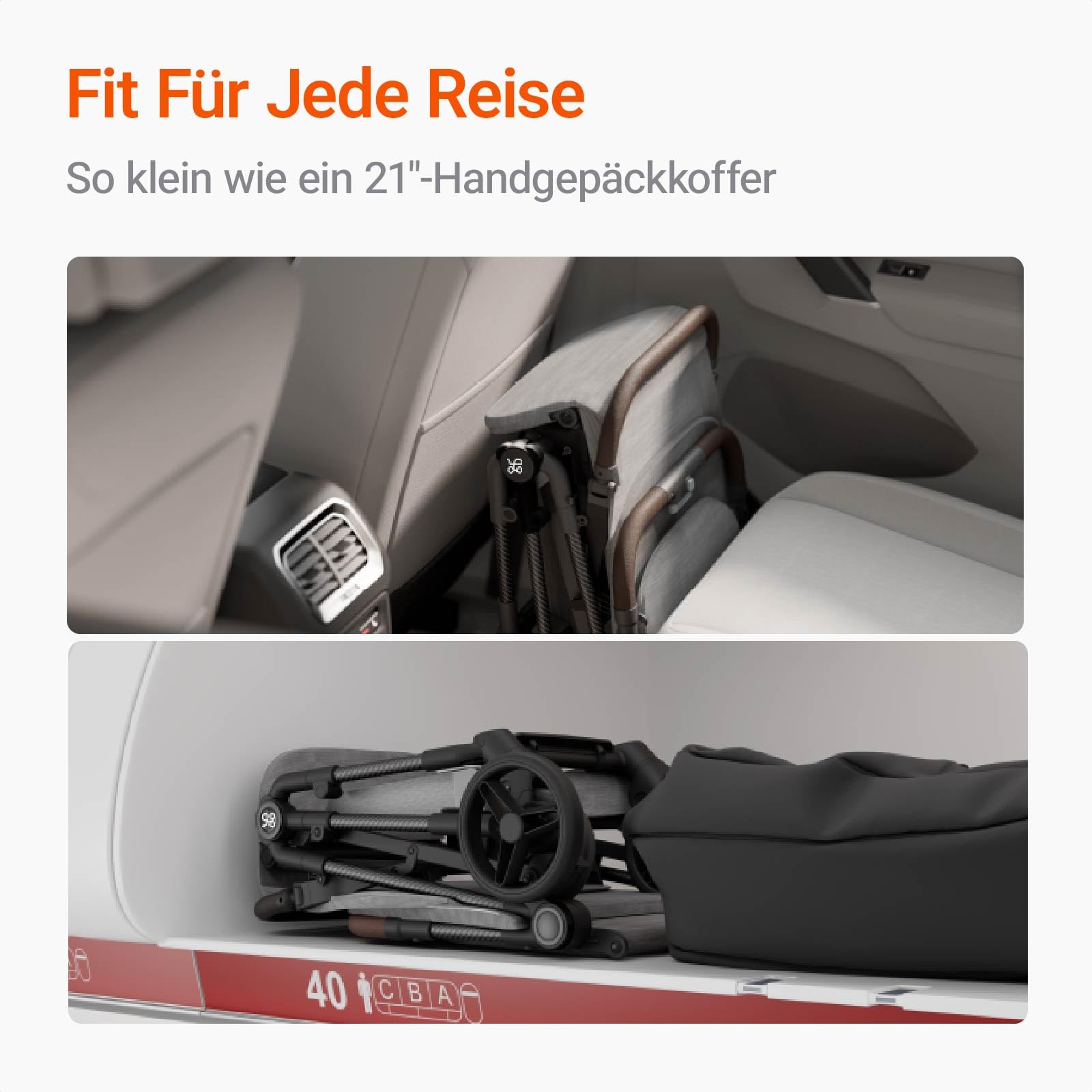 - Easy to fold and unfold: the newborn pushchair can be folded with one hand. The intuitive folding mechanism allows you to quickly fold and unfold the ultra-light travel buggy in just a few simple steps: the travel buggy is perfect for travelling with children or for use in stressful situations. When folded, the foldable pushchair can be easily stored in aircraft luggage or in the boot