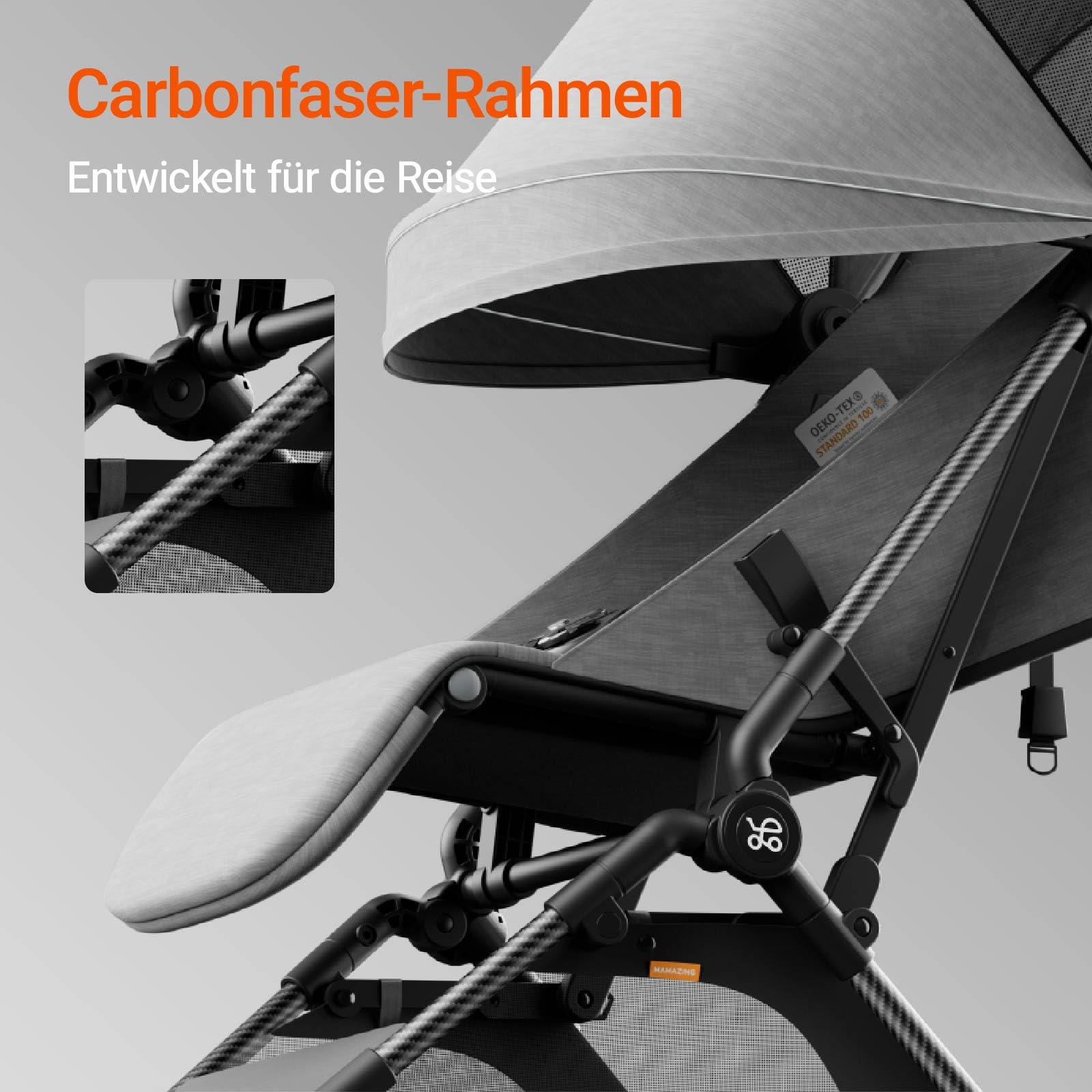 MAMAZING Baby Travel Buggy Pushchair for 6 - 4 Years up to 22 kg, Hand Luggage, Suitable for Small Folding Buggy Aeroplane with One-Handed Folding Design, Lightweight and Compact (5.26 kg) Made of