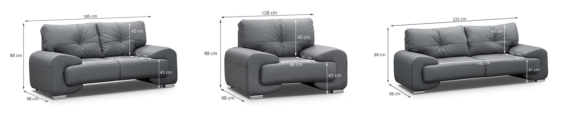 Mars Meble Big-Sofa OME_321 Omega Upholstered Set 3+2+1 Sofa Living Room Sofa Set 3-Piece Couch (Black), 225 x 98 x 88 cm, 185 x 98 x 88 cm, 128 x 98 x 88 cm