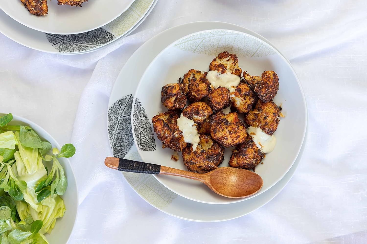 - Porcelain crockery set for 6 people with pretty delicate leaf decoration, consisting of 6 x flat dinner plates, 6 x deep plates, 6 x dessert plates, 6 x coffee cups and 6 x coffee saucers