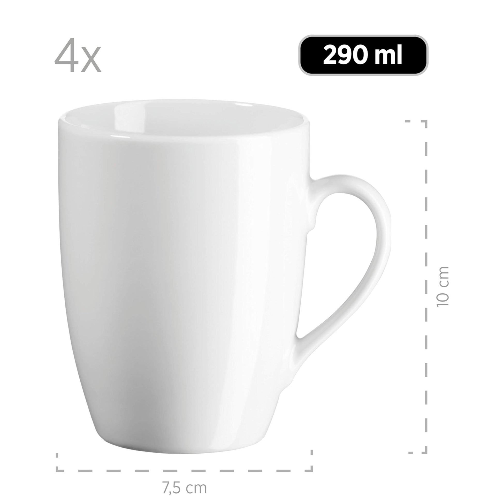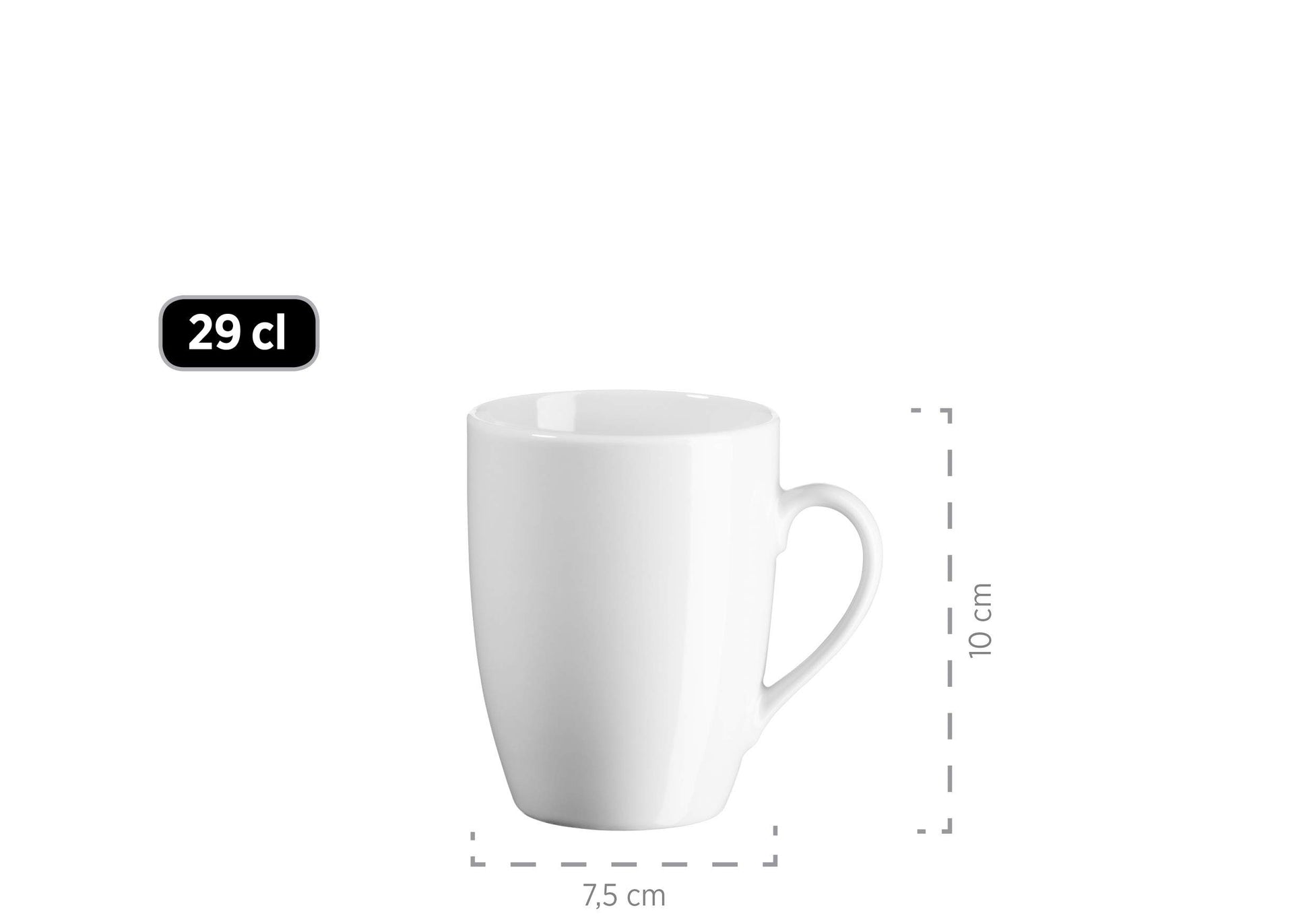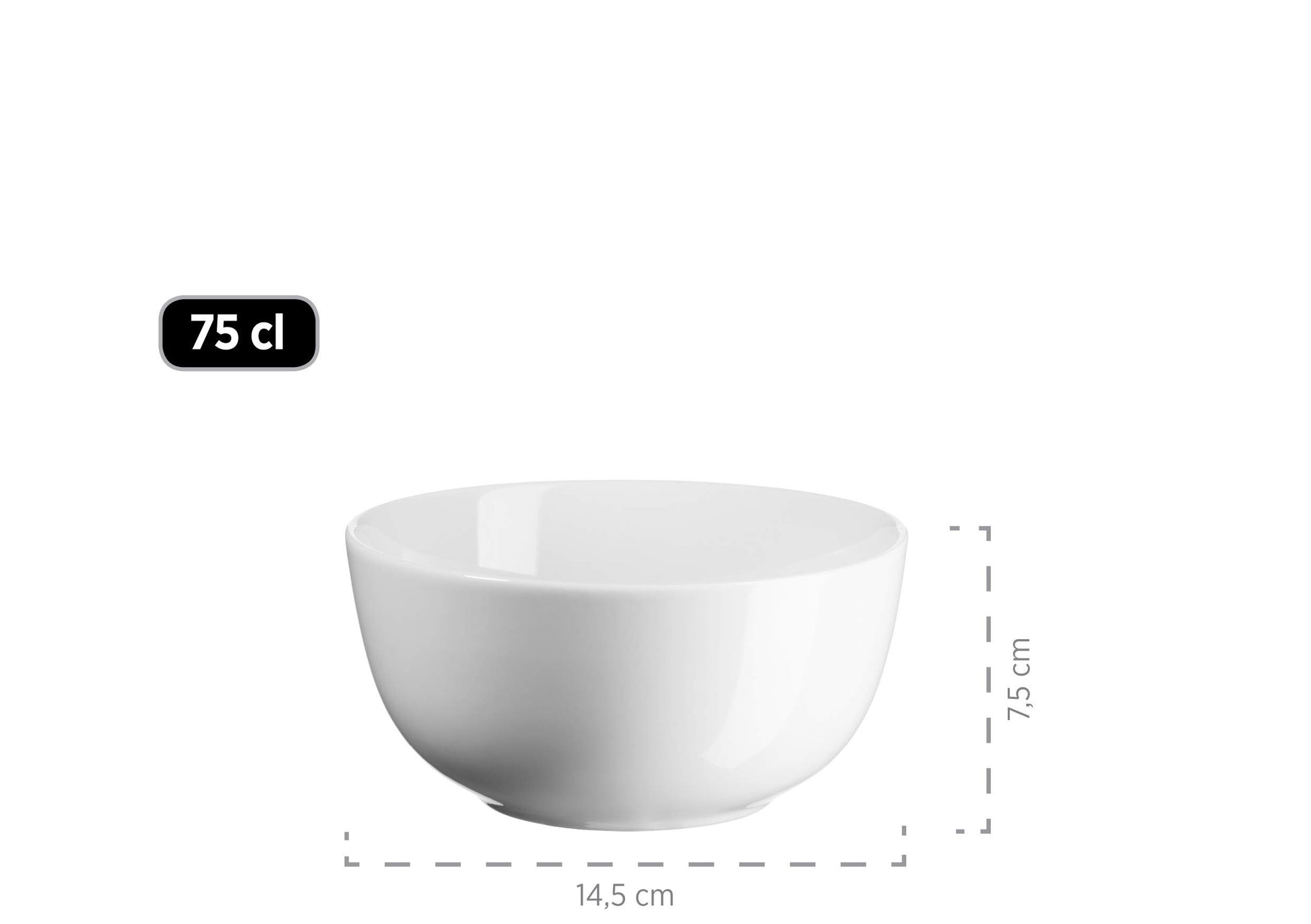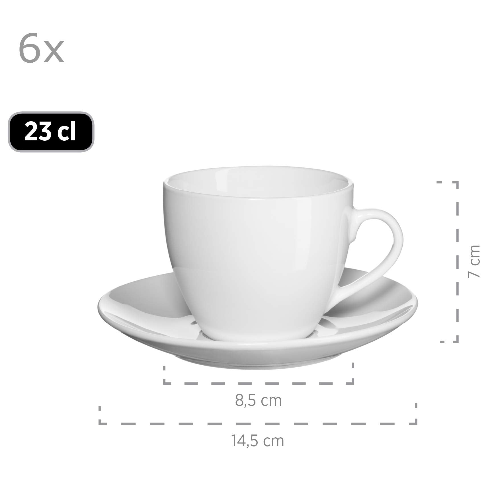 - Dieses 30-teilige Service Set für 6 Personen aus Porzellan in Weiß besteht aus 6x Essteller flach (Ø 24 cm), 6x Suppenteller tief (Ø 20 cm), 6x Dessertteller bzw. Frühstückteller (Ø 20,5 cm), 6x Müslischale (Ø 14,5 cm, 750 ml) und 6x große Kaffeetasse (290 ml)