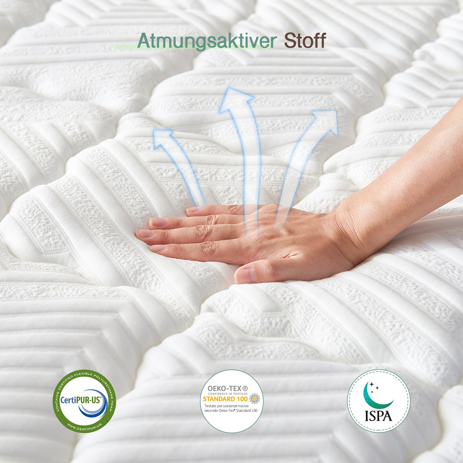 - 7-zone pocket core system: the mattress is made of comfortable memory foam and a 7-zone pocket spring core that provides sufficient support for all parts of the body, adapts better to the body, reduces pressure on the body and makes sleep more comfortable.