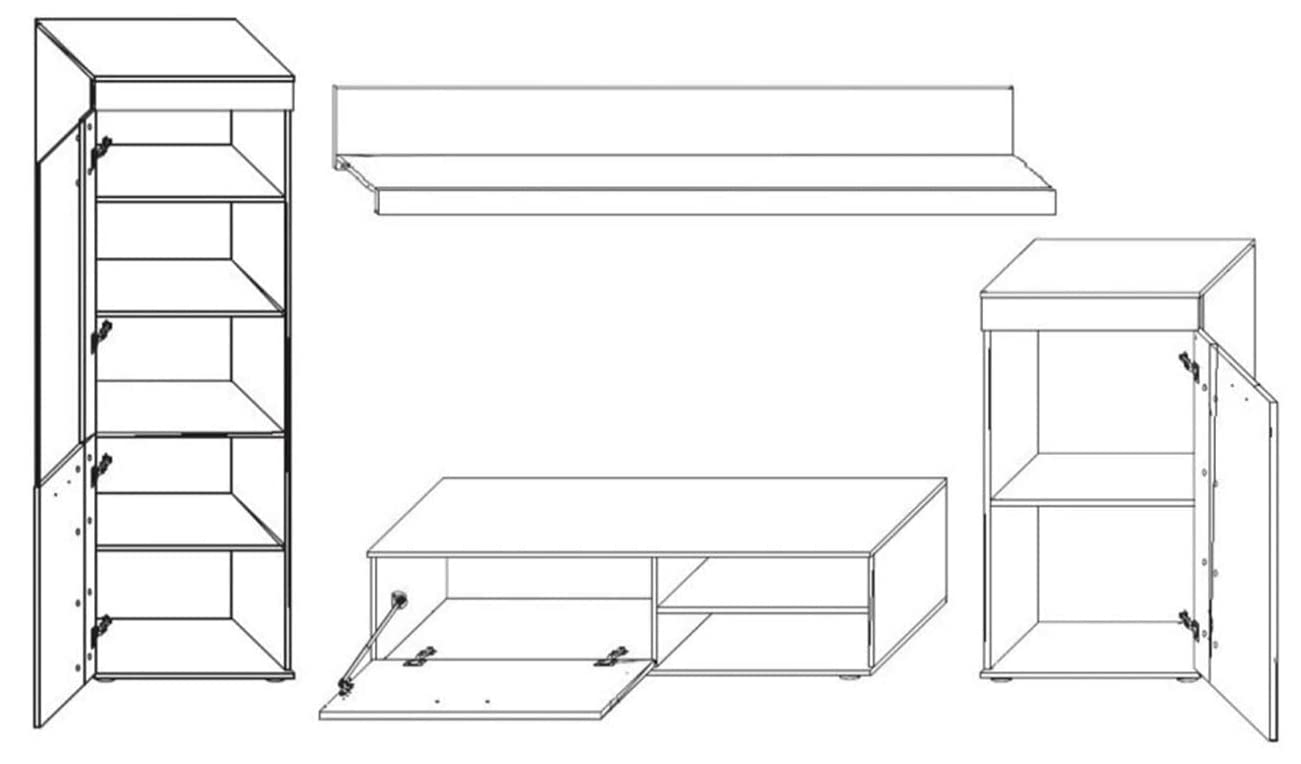 - Practical solutions: a TV cabinet with open shelf on the right side and an all-purpose cabinet, living room chest of drawers with hinged lid on the left side offer practical storage solutions. The entire unit is delivered by freight forwarder. Easy roadside delivery without bringing parcels into the home.
