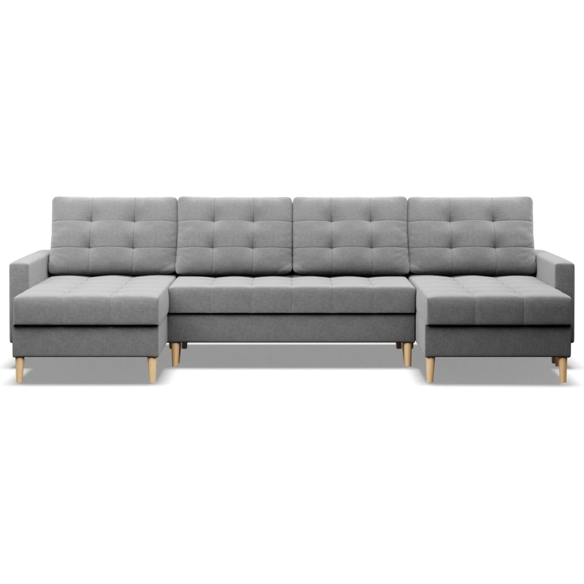 Double-sided cushions and quilted seats give the furniture a unique character while providing comfort. Thanks to the high legs made of beech wood, the corner sofa is lighter and cleaning easier. As a freestanding piece of furniture, Elma blends perfectly into modern, minimalist arrangements and offers complete comfort every day.