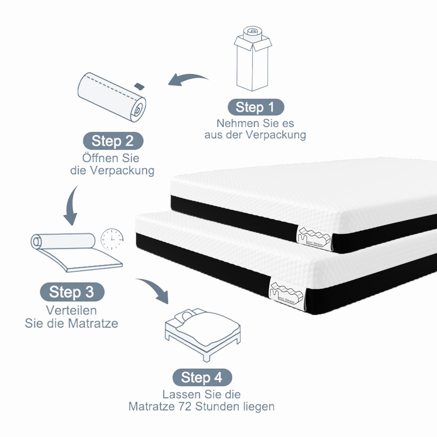 - The 180 x 200 x 20 cm cold foam and gel memory foam mattress from Memory Matratzen is characterised by its quick rebound. The mattress comes in a special roll, which facilitates transport and installation. After unpacking, the mattress quickly returns to its original shape and is ready to use. Thanks to this innovative packaging, the mattress also fits easily through narrow doors and stairs.