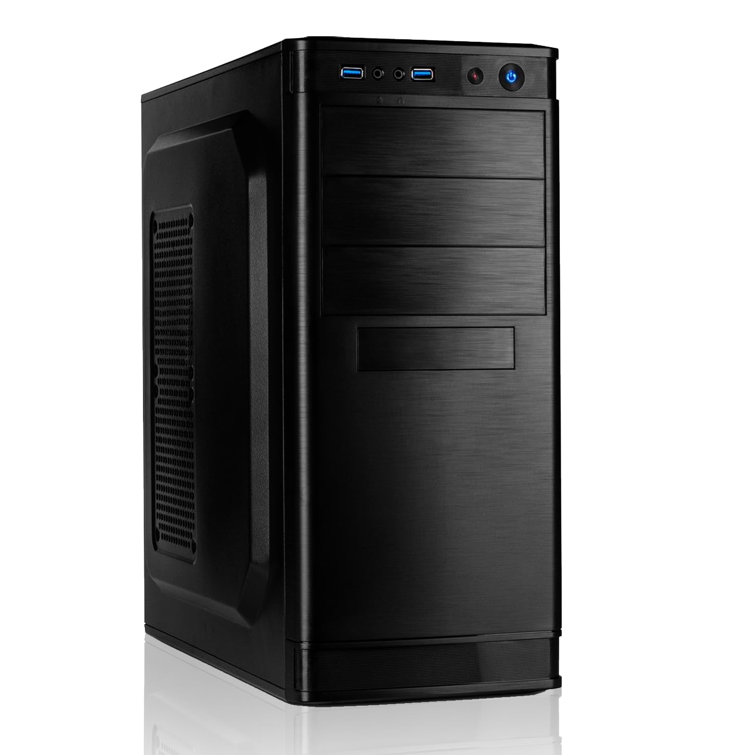 - Zukunftssicher ausgestattet: Bis zu drei Monitore über HDMI, DisplayPort und VGA, optional um bis zu drei Festplatten erweiterbar und dank des leistungsstarken 600W-Netzteils mit passenden Anschlüssen optimal für die Aufrüstung für eine Grafikkarte vorbereitet.